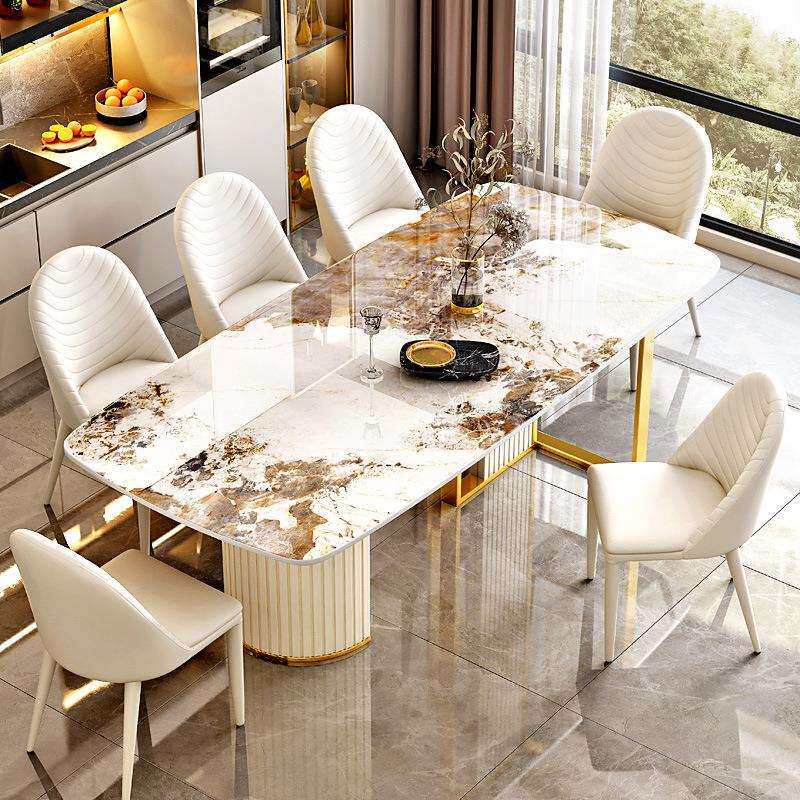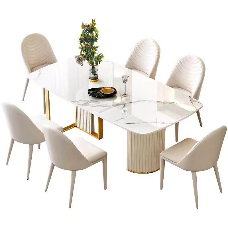 轻奢岩板餐桌椅组合白色家用小户型现代简约客厅长方形西歺桌饭桌