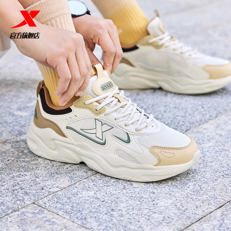 特步星火休闲鞋男鞋夏季网面透气轻便运动鞋正品百搭厚底增高女鞋