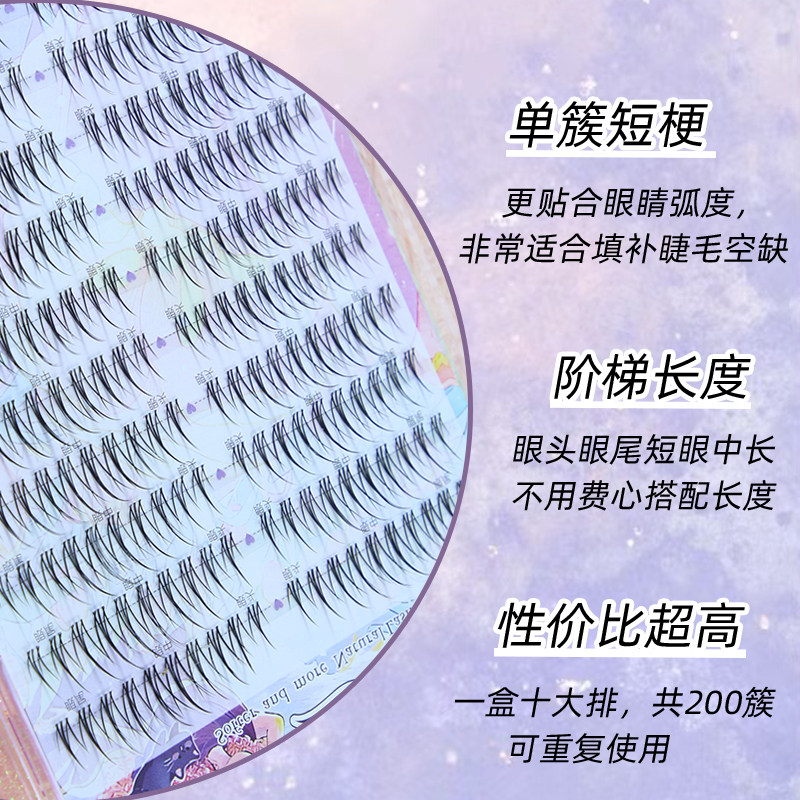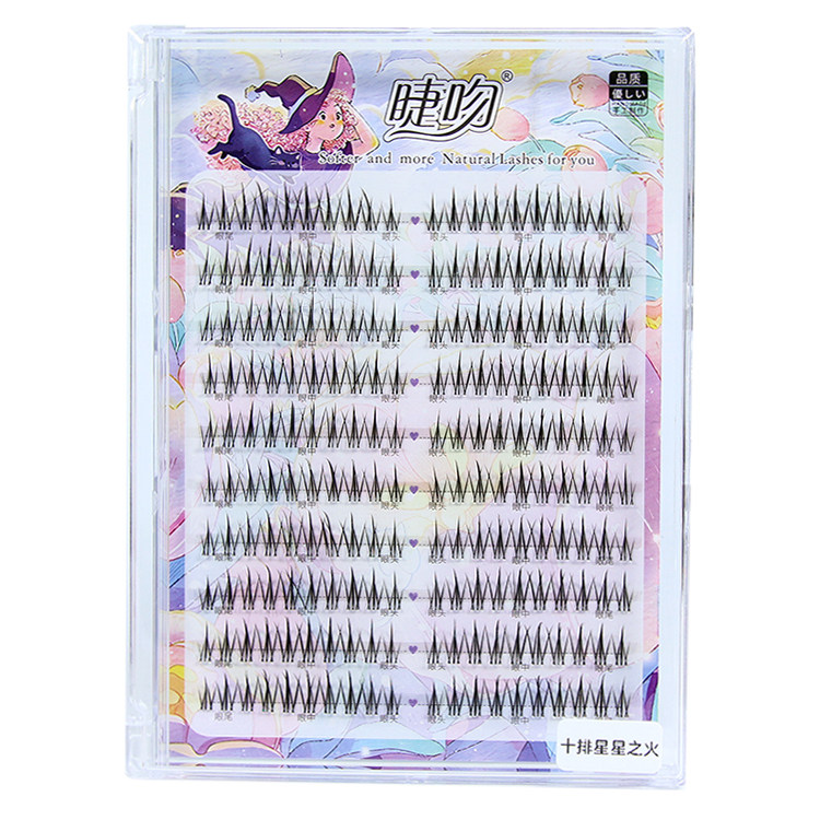 睫吻[星星之火]10排小火苗清透自然假睫毛单簇朵毛伪素颜新娘妆