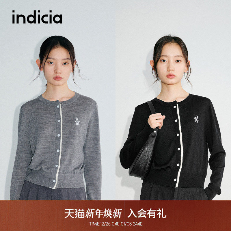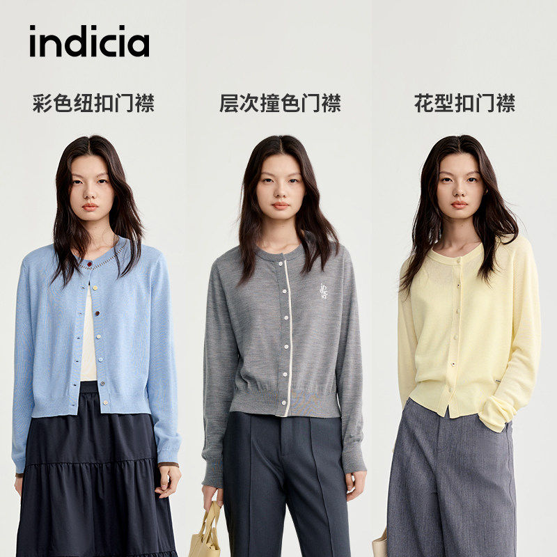 indicia标记25秋新款全绵羊毛薄款针织衫女上衣外搭开衫L2C5KS129