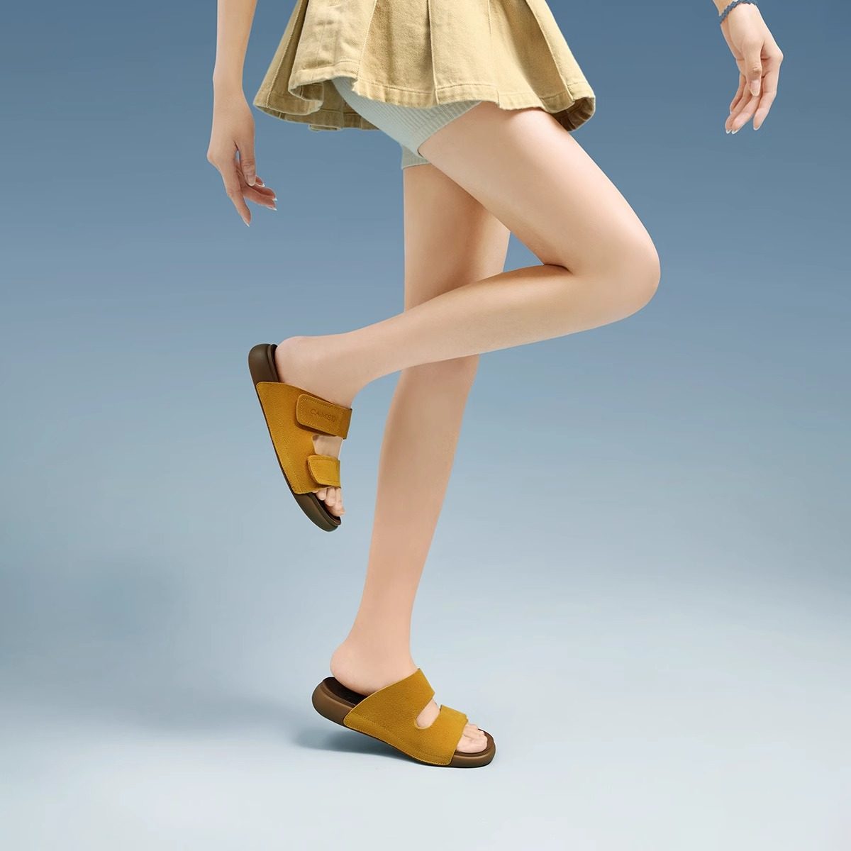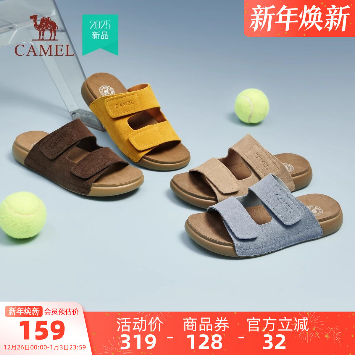 骆驼女鞋2025秋季新款凉鞋女款复古平底勃肯鞋百搭外穿一字拖鞋子