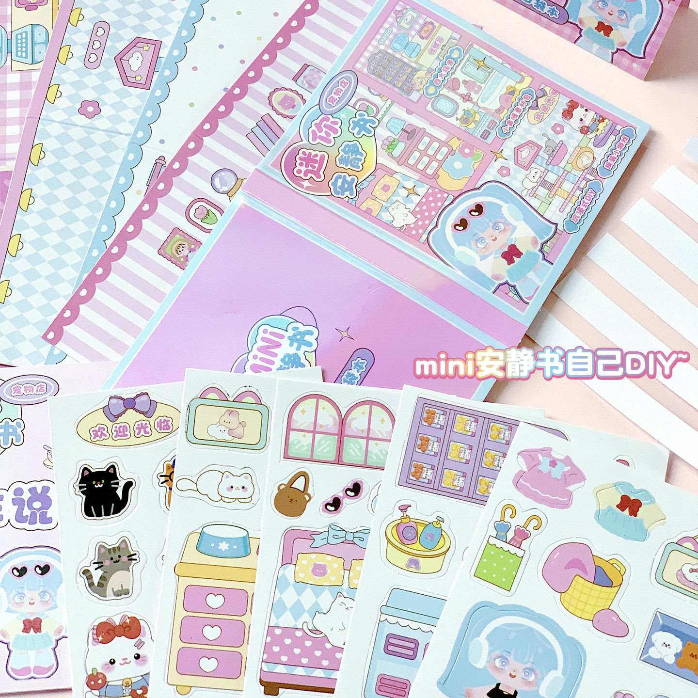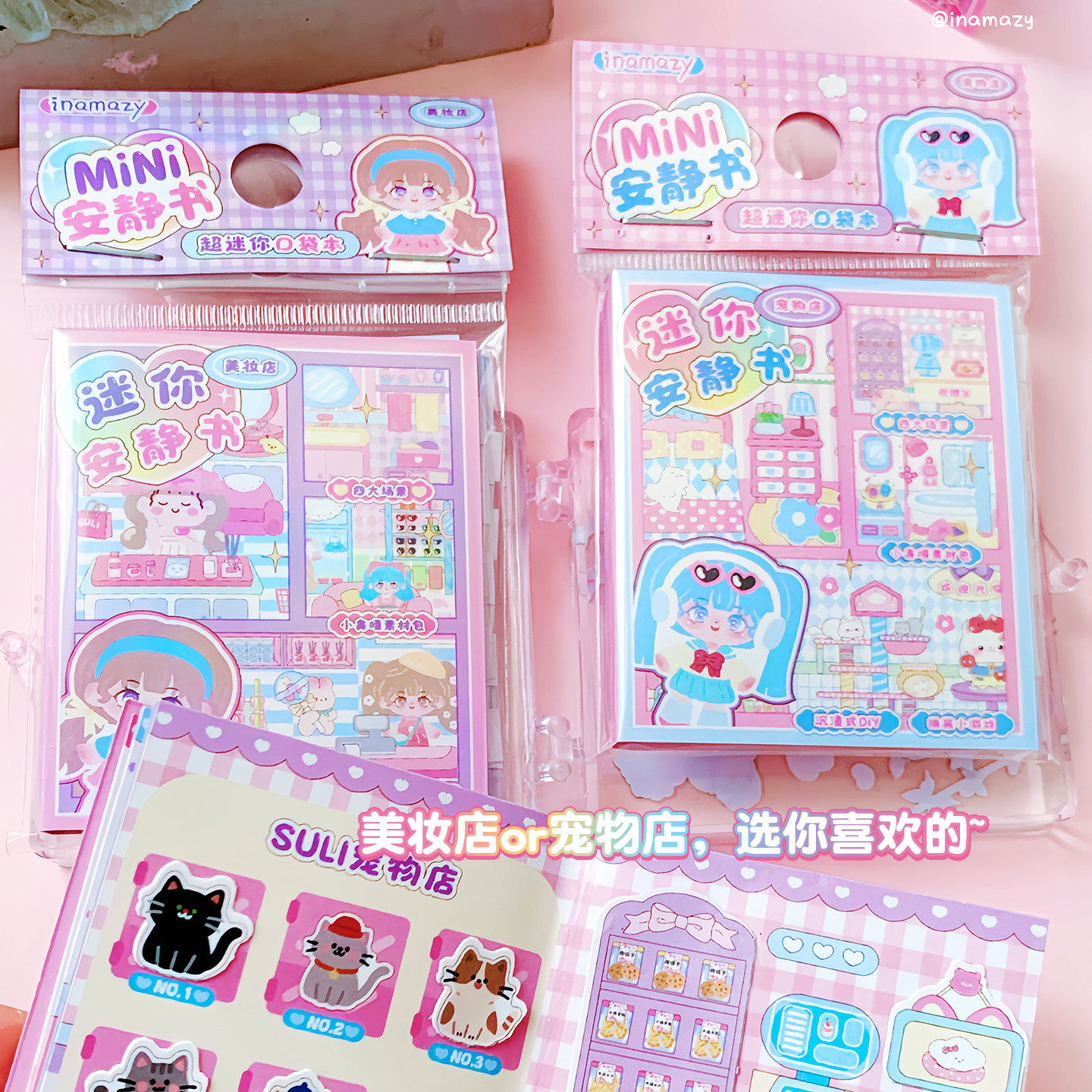 inamazy迷你安静书口袋本模拟美妆店宠物店DIY豆豆本自制解压贴纸