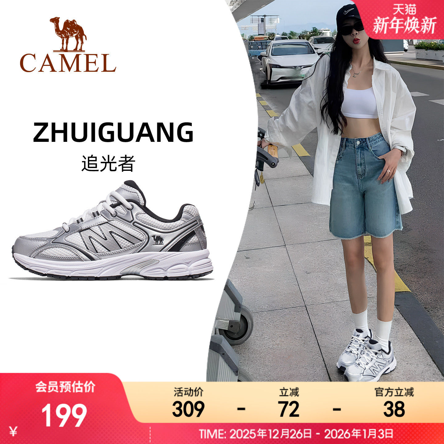 骆驼慢跑鞋女2025秋新款耐磨网面复古休闲鞋老爹鞋舒适银色运动鞋