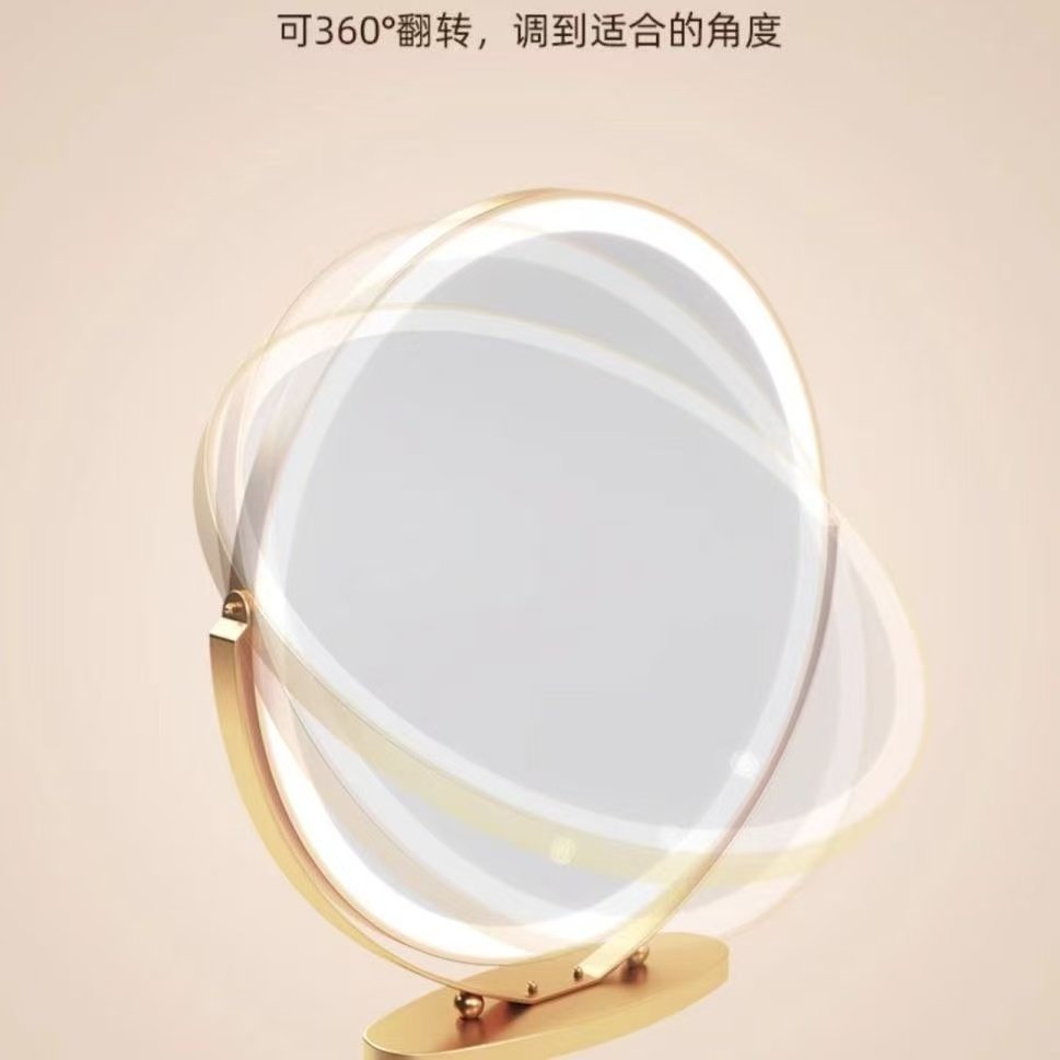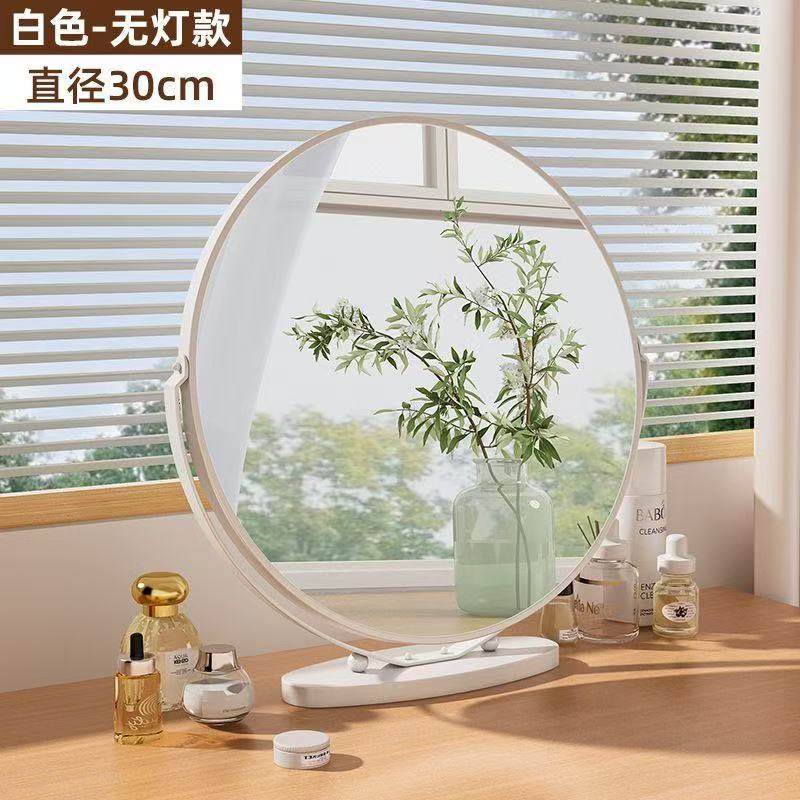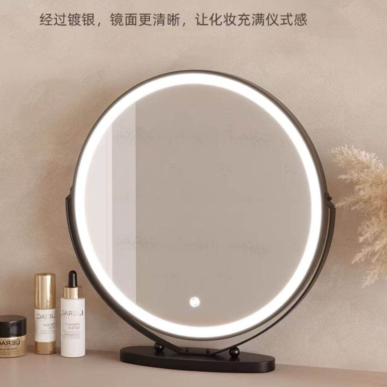 镜子化妆镜桌面台式智能led带灯光女生卧室房间网红奶油风梳妆台