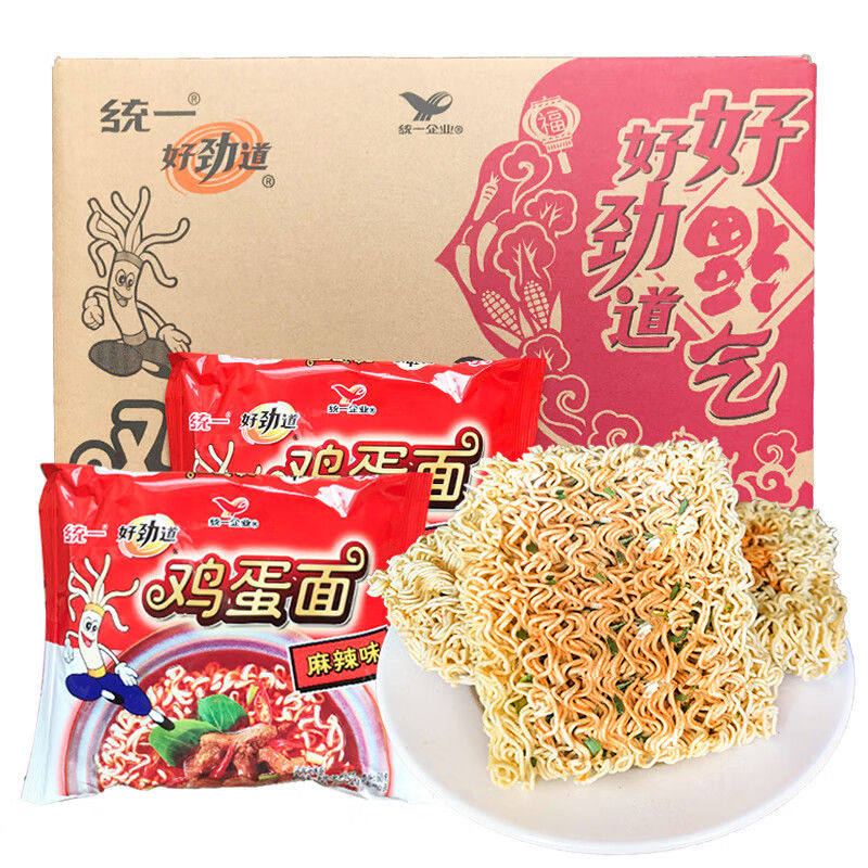 统一好劲道鸡蛋面27包整箱批发麻辣味方便面干脆面干吃面袋装夜宵