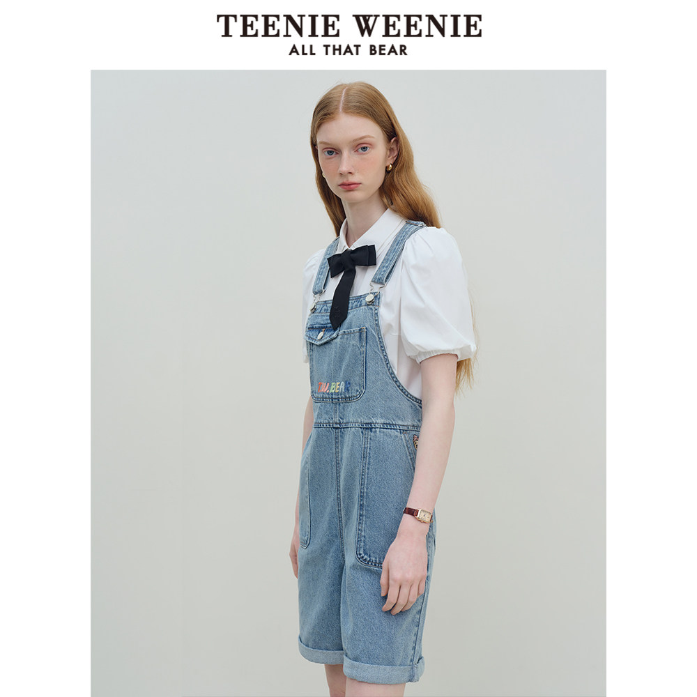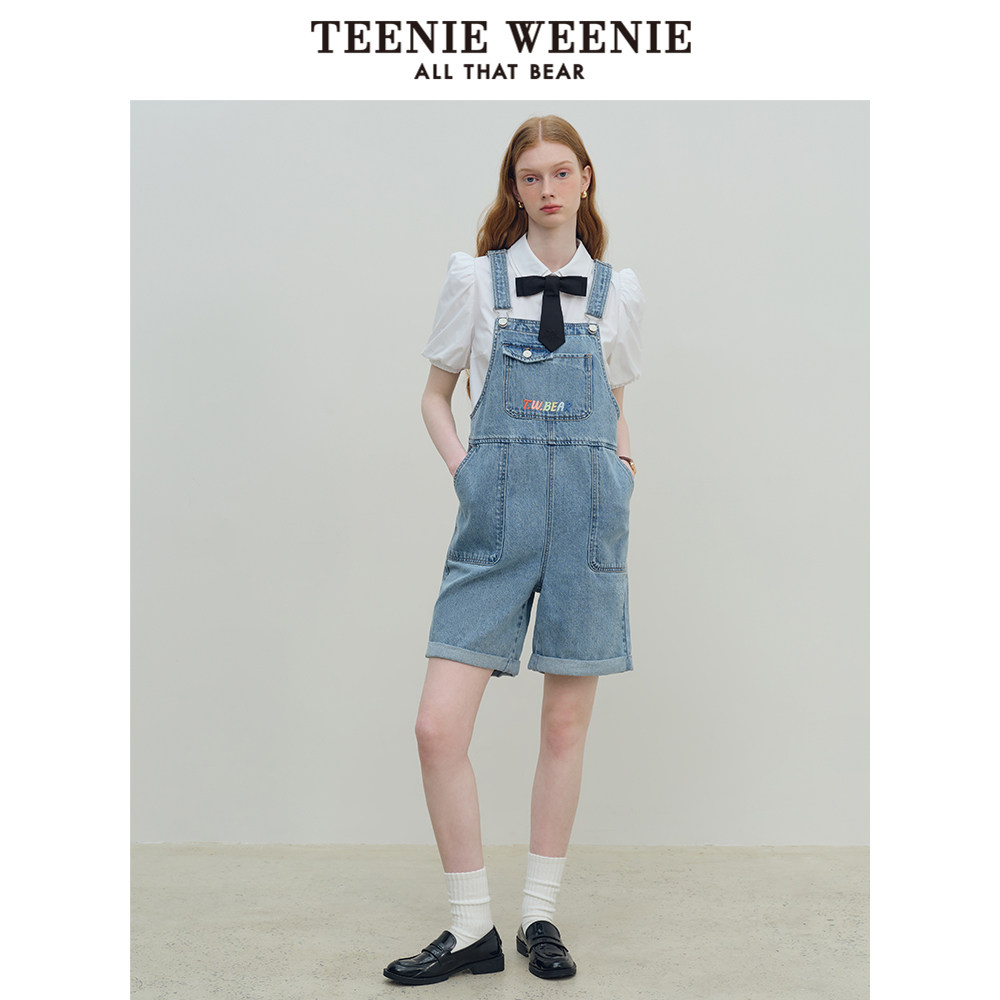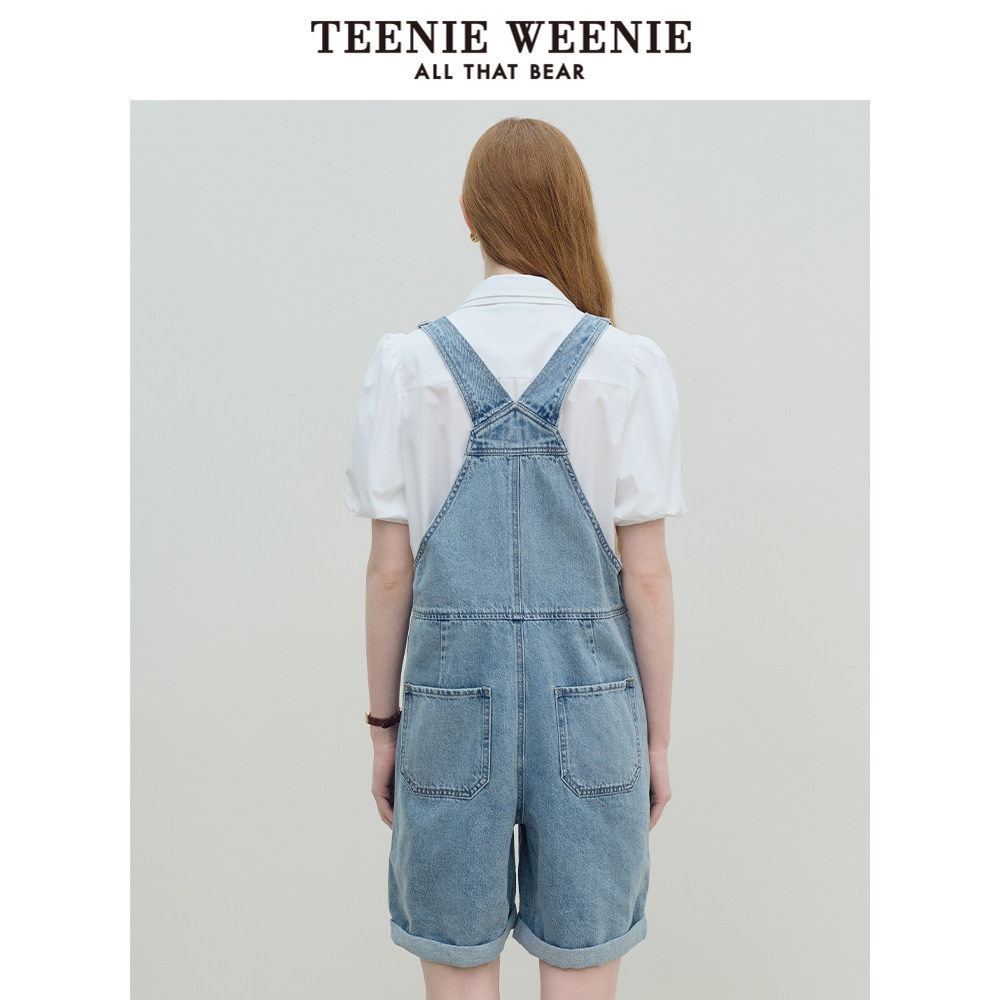 TeenieWeenie小熊奥莱女装夏装牛仔背带短裤简约通勤连体裤