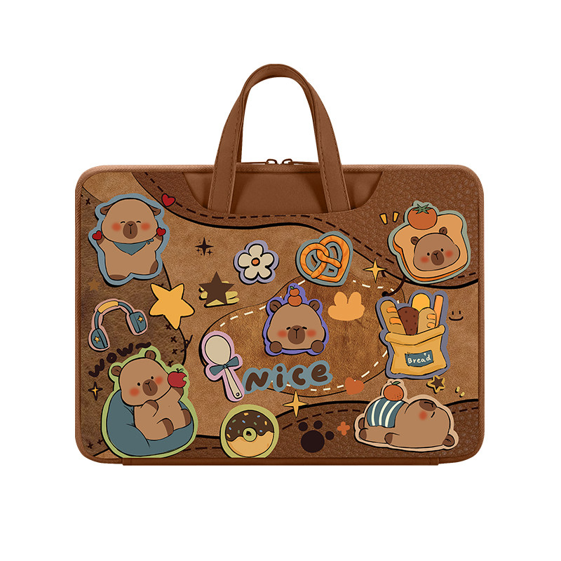 可爱卡皮巴拉电脑手提包14英寸卡通笔记本收纳包使用苹果mac13.3华为荣耀16.1英寸防水联想air15寸通用防震包