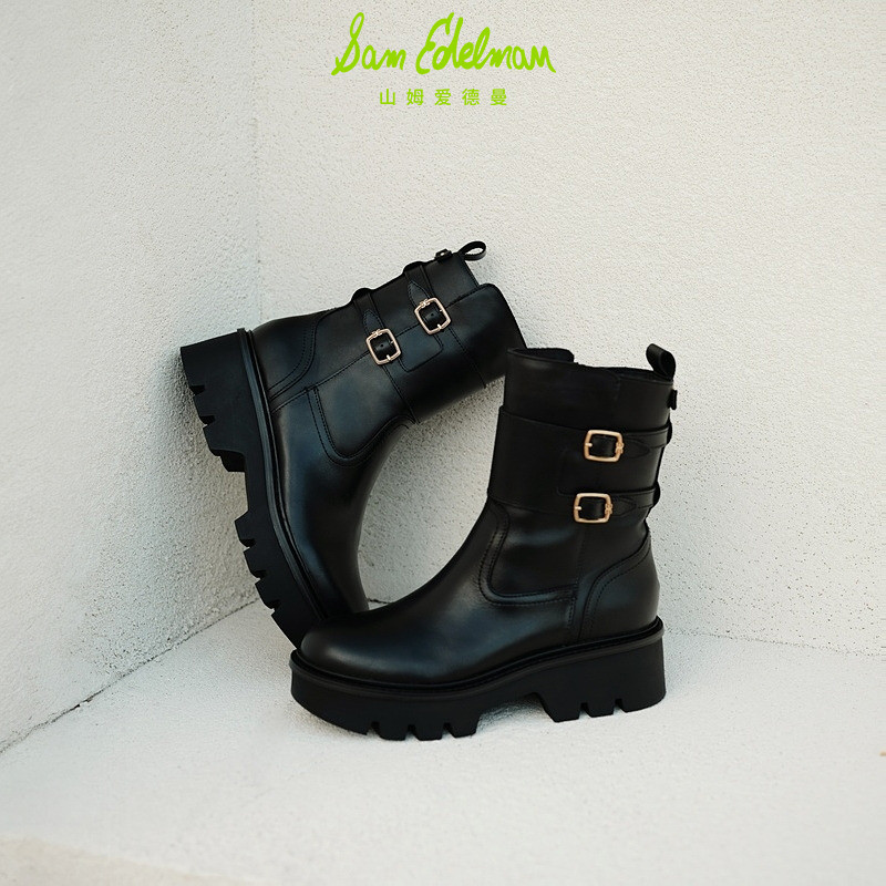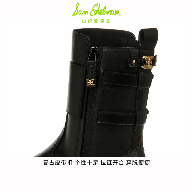 虞书欣同款SAM EDELMAN山姆爱德曼冬季黑圆头牛皮骑士女靴CECILY