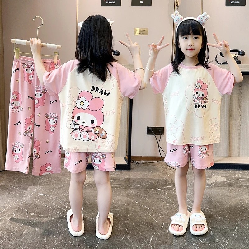 儿童女童睡衣夏季小女孩中大童短袖母女亲子家居套装2025新款薄款