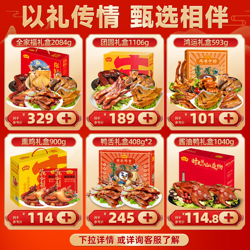 精武武汉鸭脖辣卤鸭肉类零食大礼包鸭货卤味小吃食品新年礼盒特产