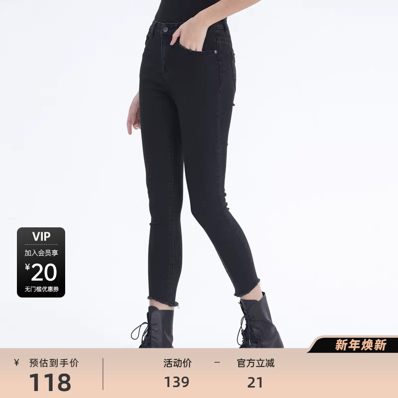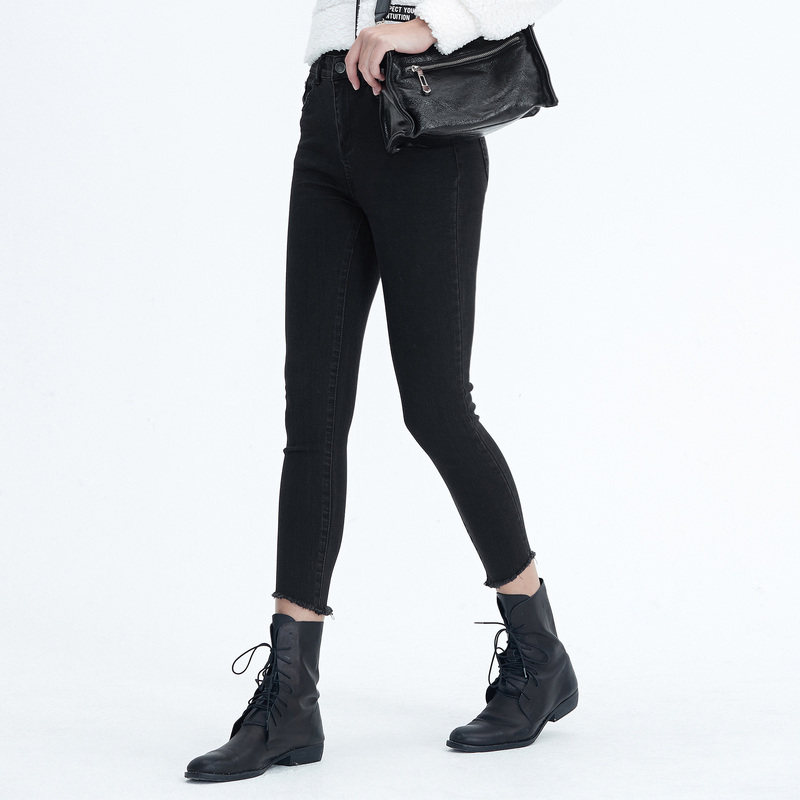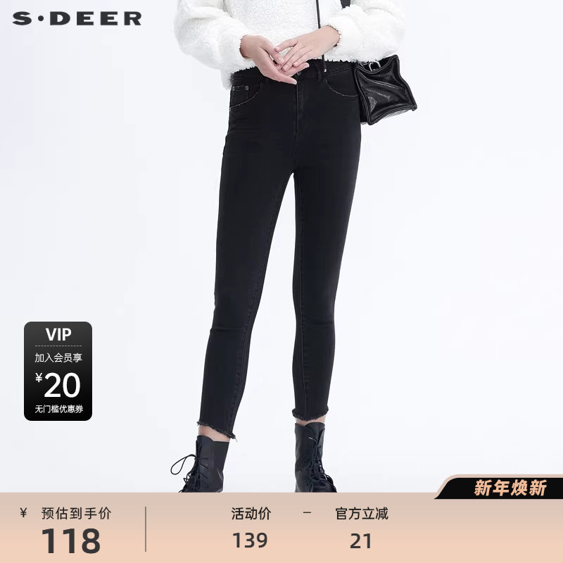 sdeer圣迪奥女装个性铆钉插袋修身毛边牛仔裤S20480802