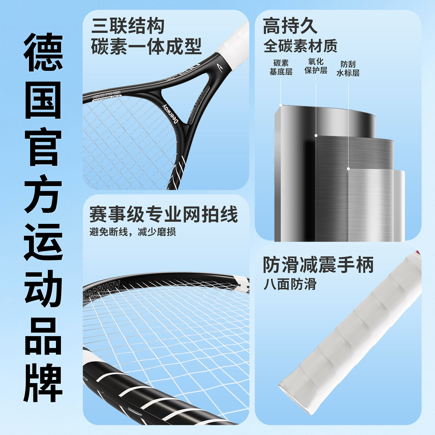 德国全碳素网球训练器单人打带线网球拍成人自动自练神器碳纤维