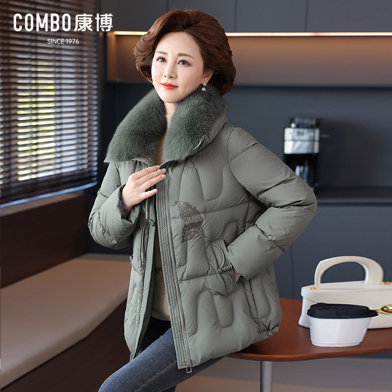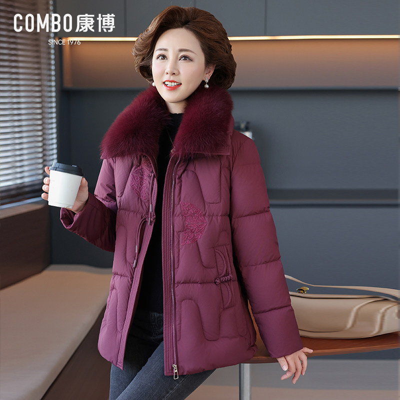 combo/康博冬季新款中老年羽绒服女大毛领刺绣盘扣新中式羽绒服女
