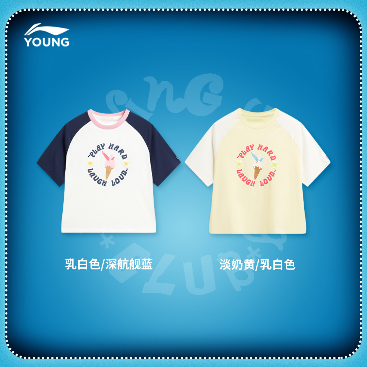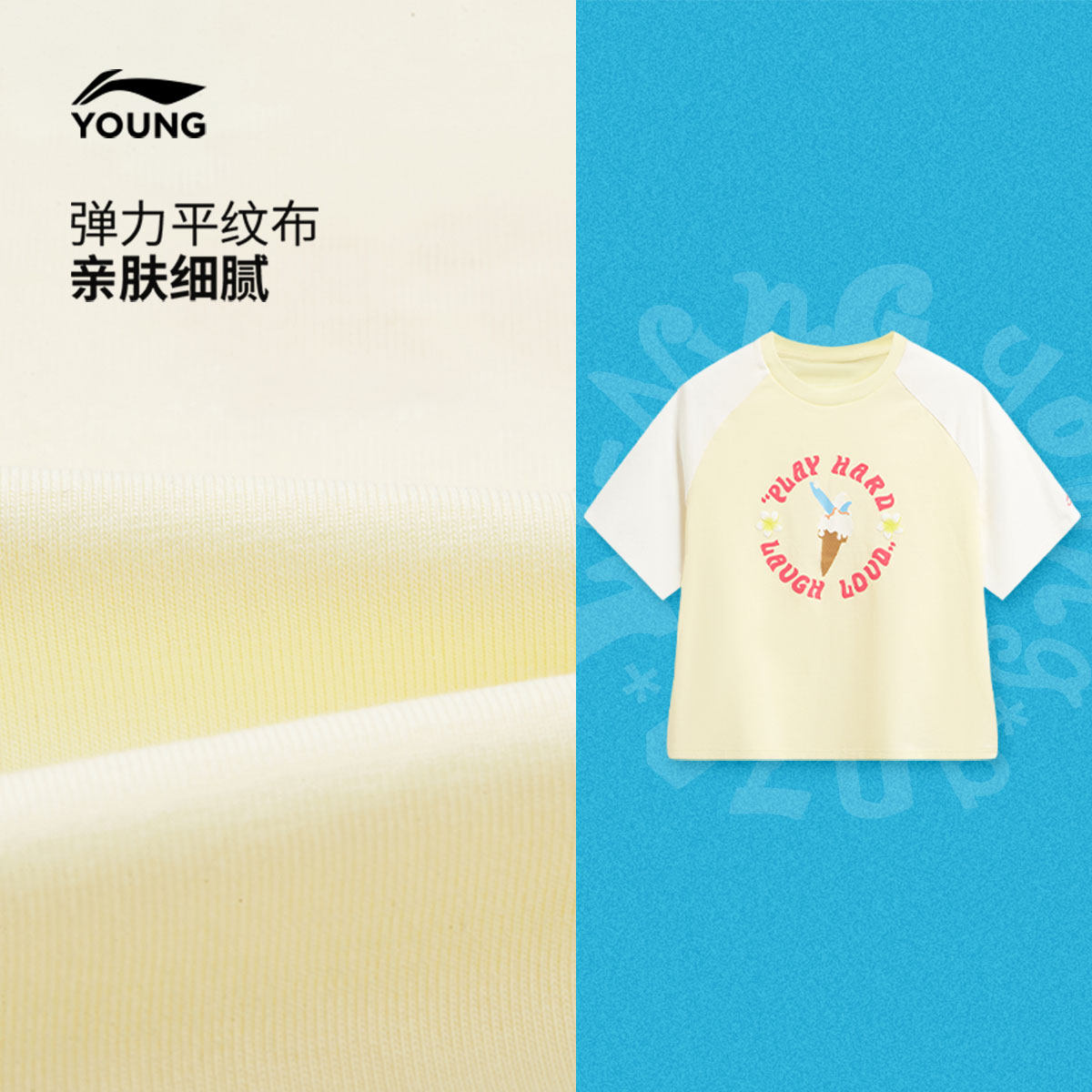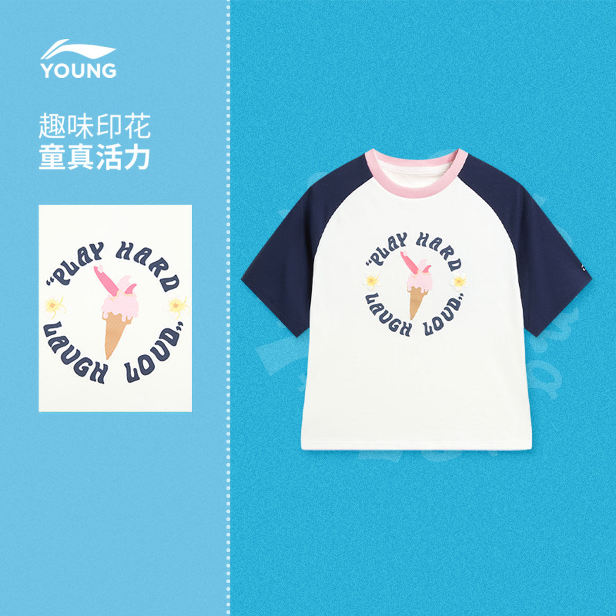 李宁童装短袖T恤女大童运动生活系列青少年圆领夏季休闲针织童装
