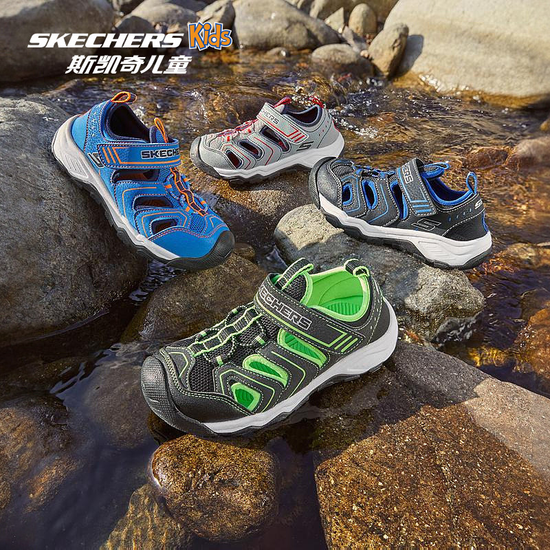 Skechers斯凯奇小护甲儿童户外运动包头凉鞋水陆防滑耐磨溯溪鞋