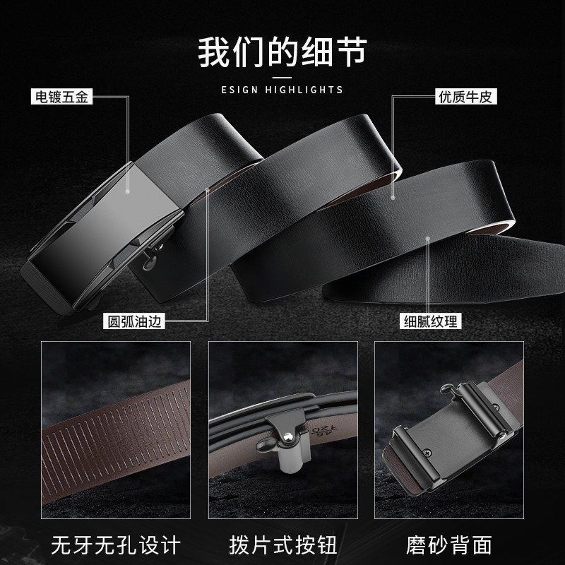 无牙无孔自动扣内圈皮带男士内扣不漏尾巴腰带商务真皮裤带休闲