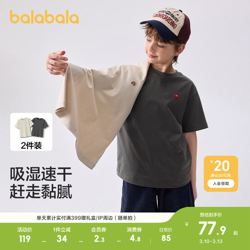 【2件装】巴拉巴拉童装儿童t恤短袖轻薄新款男童女童夏装吸湿速干