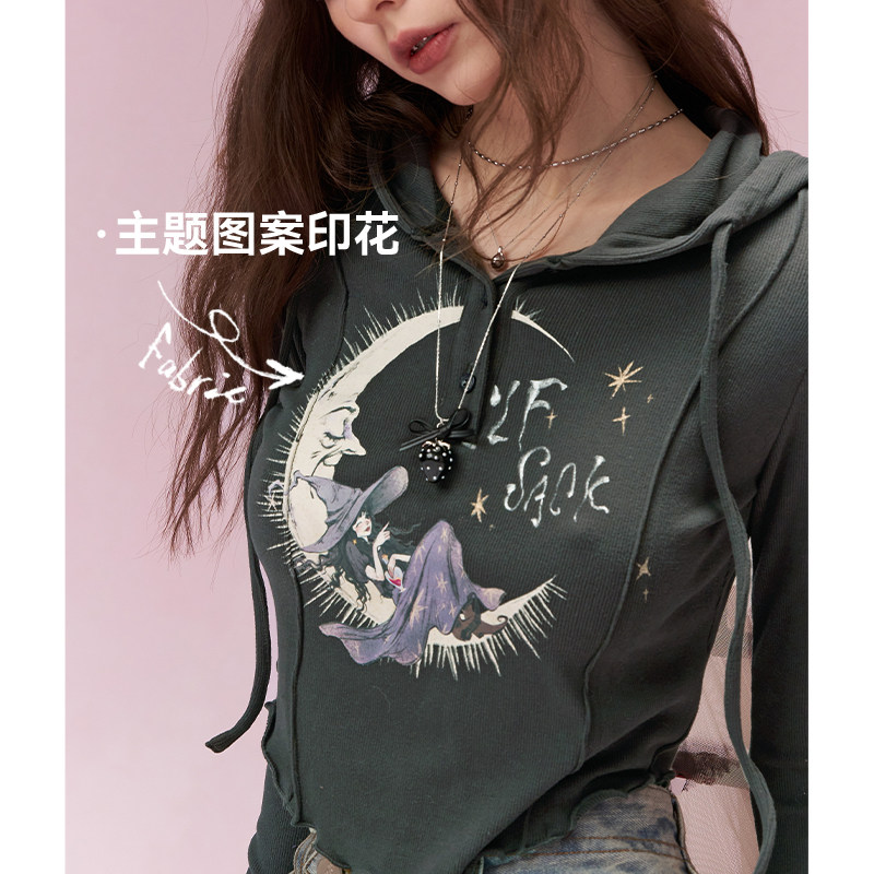 F383 美式朋克长袖连帽T恤哥特风防晒罩衫修身薄纱上衣女辣妹夏潮