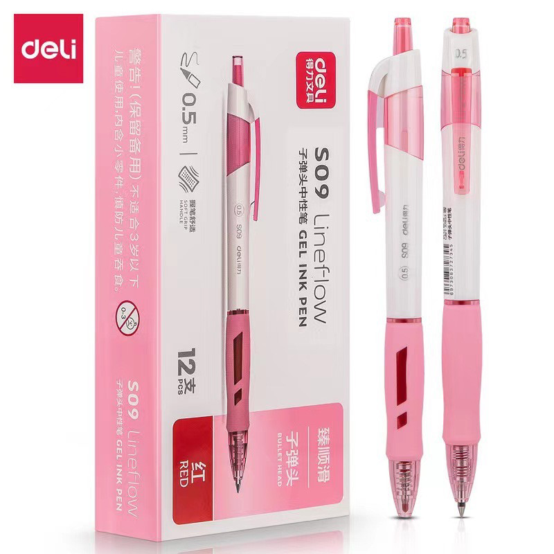 得力红笔高颜值学生批改作业专用按动式教师专用超顺畅中性笔简约