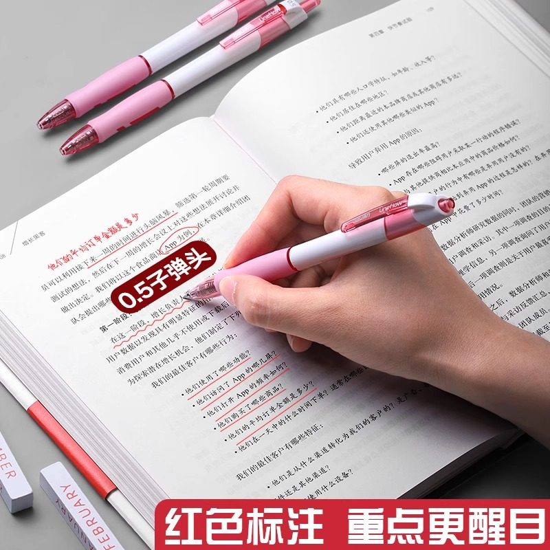 按动中性笔签字笔学生考试专用0.5mm刷题笔教师批改商务办公文具
