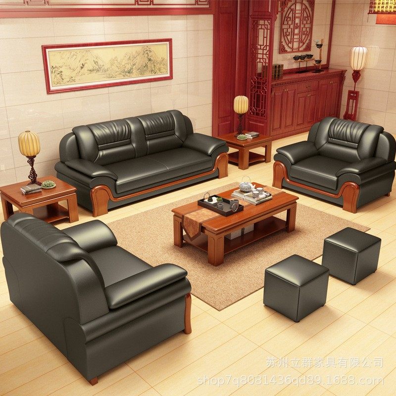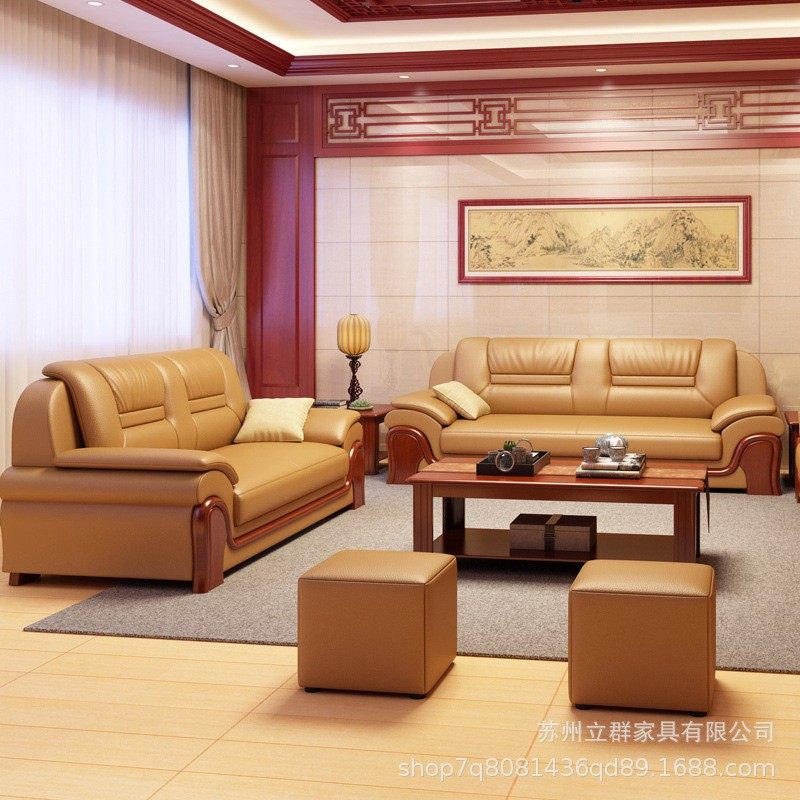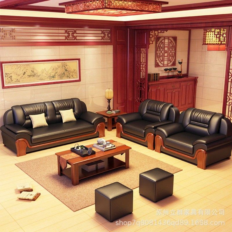 办公沙发新中式沙发商务接待皮艺沙发单人位三人位办公室会客沙发