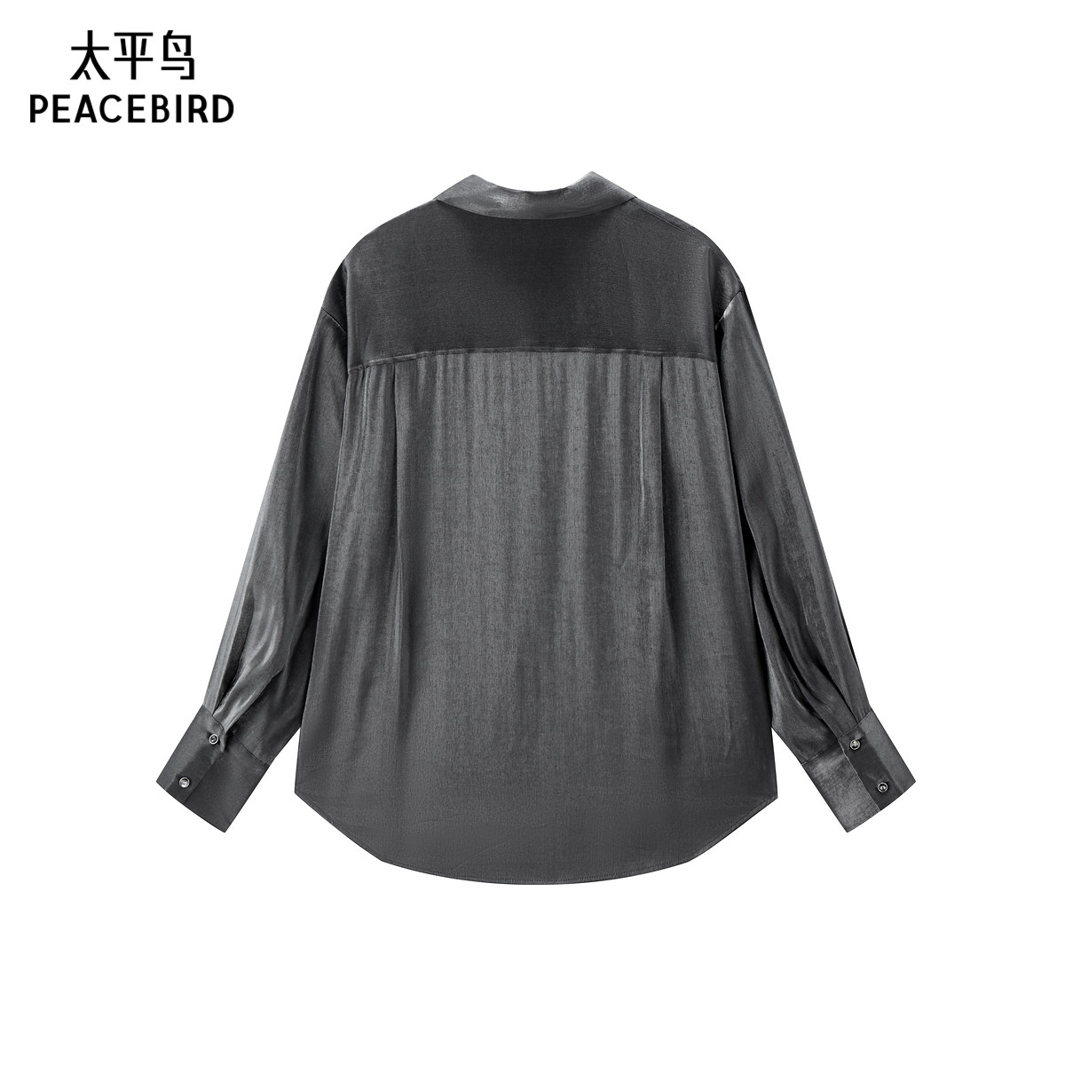 森马长袖衬衫女大翻领雪纺衬衣短背心俏皮可爱春季宽松两件套气质