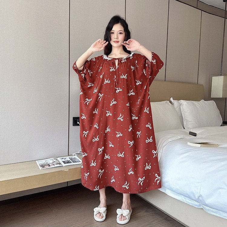 200斤加肥大码人棉短袖长款睡裙女胖MM夏季棉绸薄款家居睡衣300斤