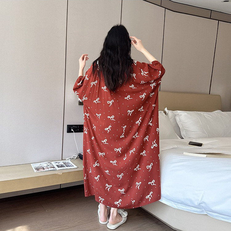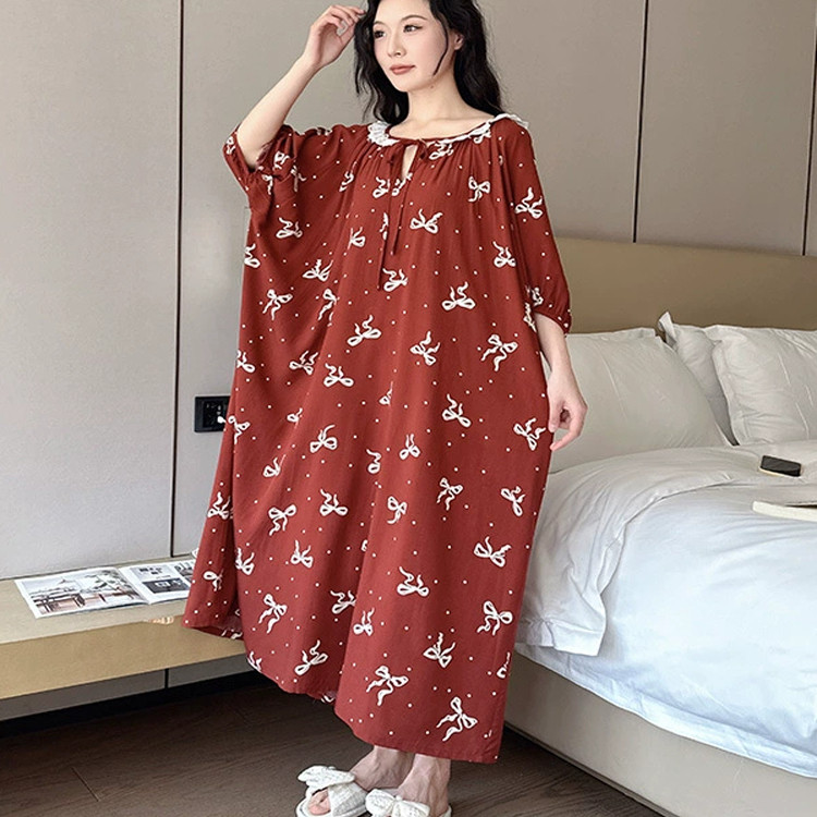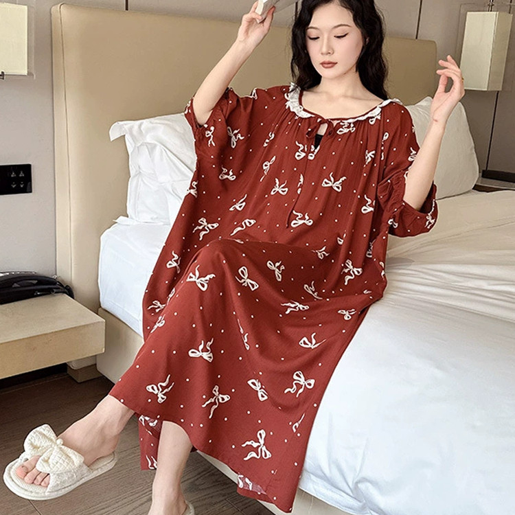 韩版加长款棉绸睡裙女士短袖加大码睡衣夏季人造棉宽松舒适居家服