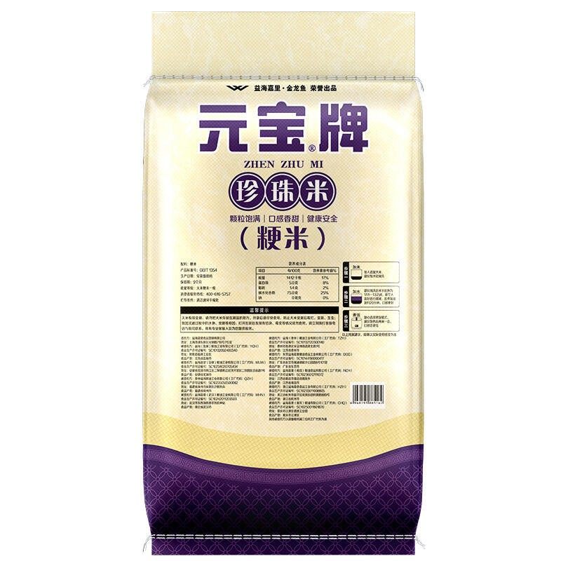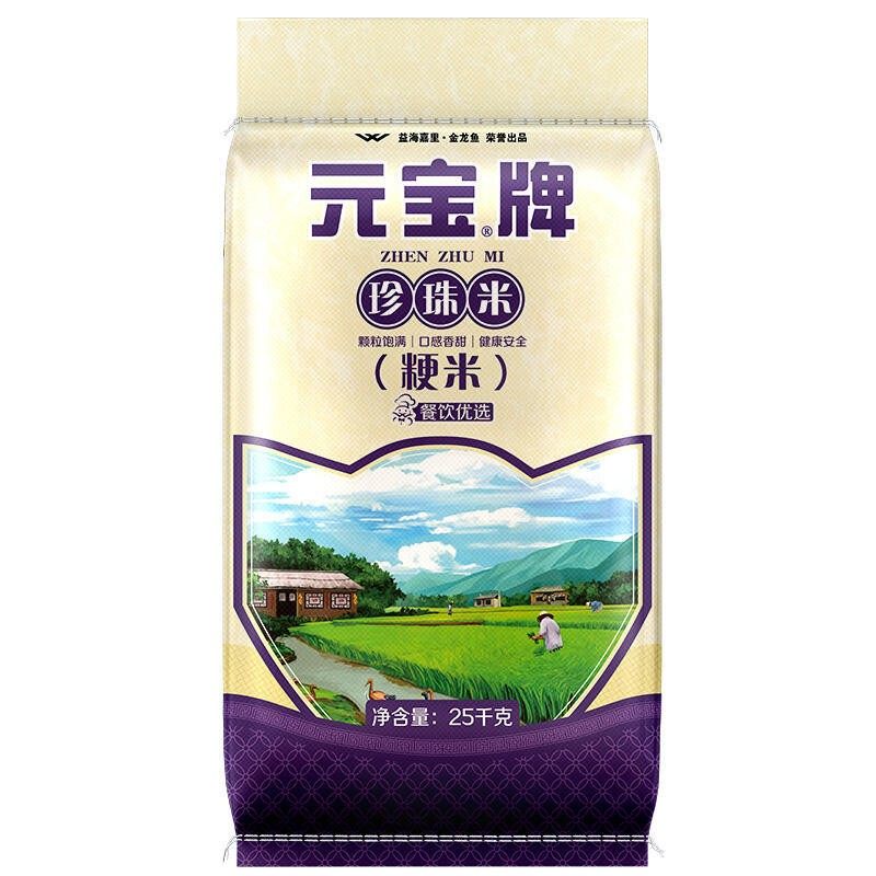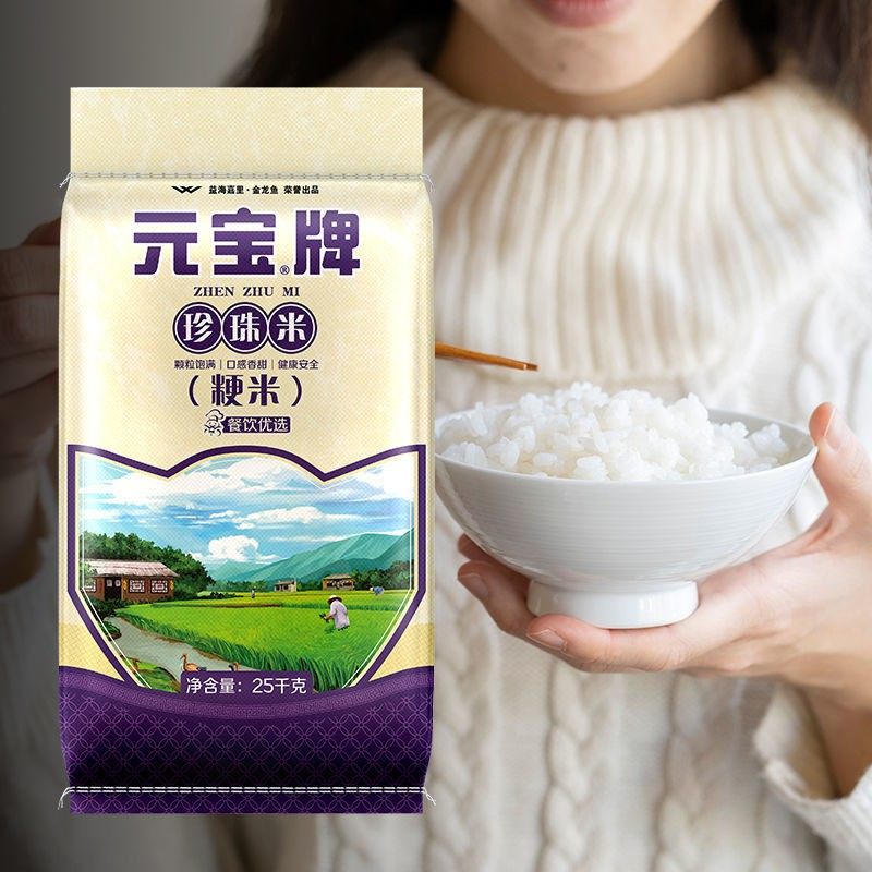 元宝牌大米珍珠米25kg家用大包装粳米软糯香甜50斤优选饭店食用