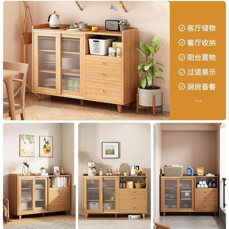 日式餐边柜靠墙一体实木色客厅茶水柜厨房置物斗柜收纳柜子储物柜