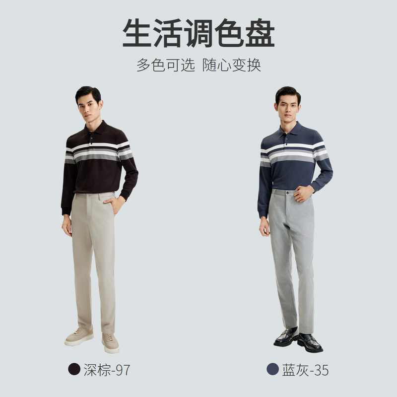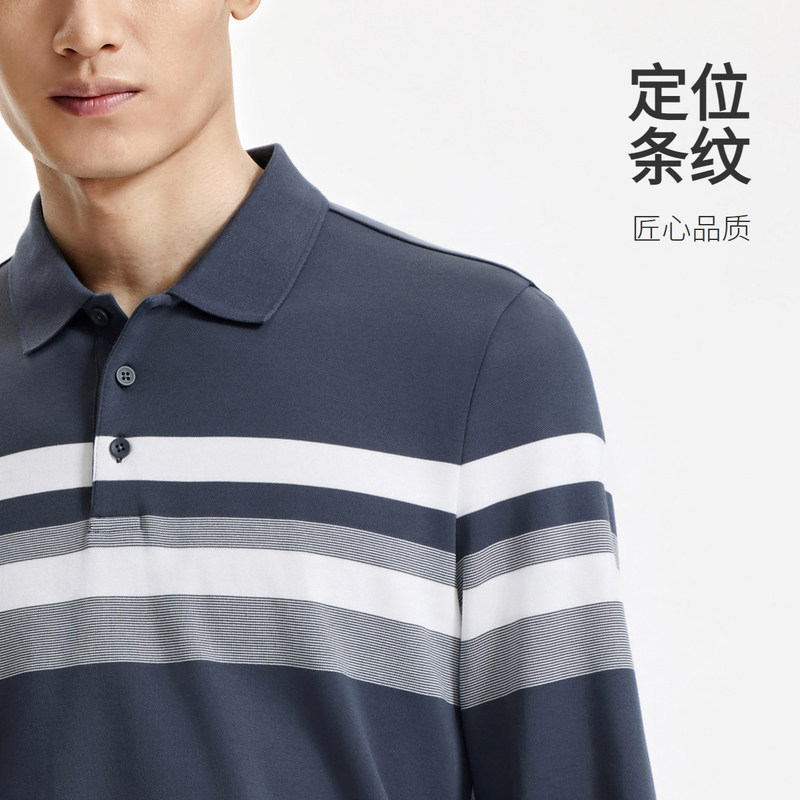 【新疆长绒棉】金利来秋冬新款长袖T恤商务条纹翻领POLO衫上衣男