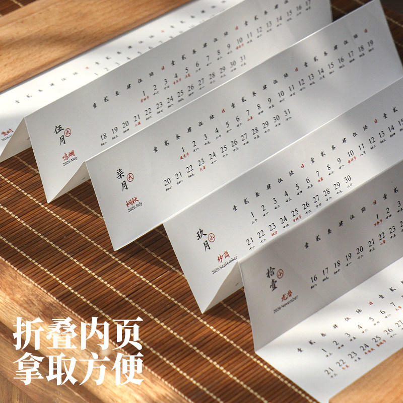台历2026年新款日历桌面摆件办公室中国风马年创意翻页工位工作打卡计划本礼盒企业广告红色喜庆礼品月历定制