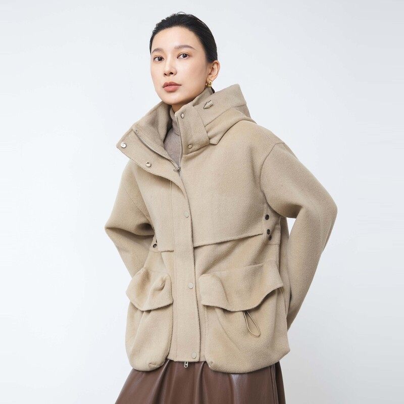 连帽夹克 大口袋 羊毛双面呢