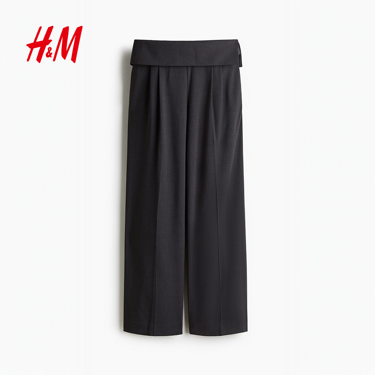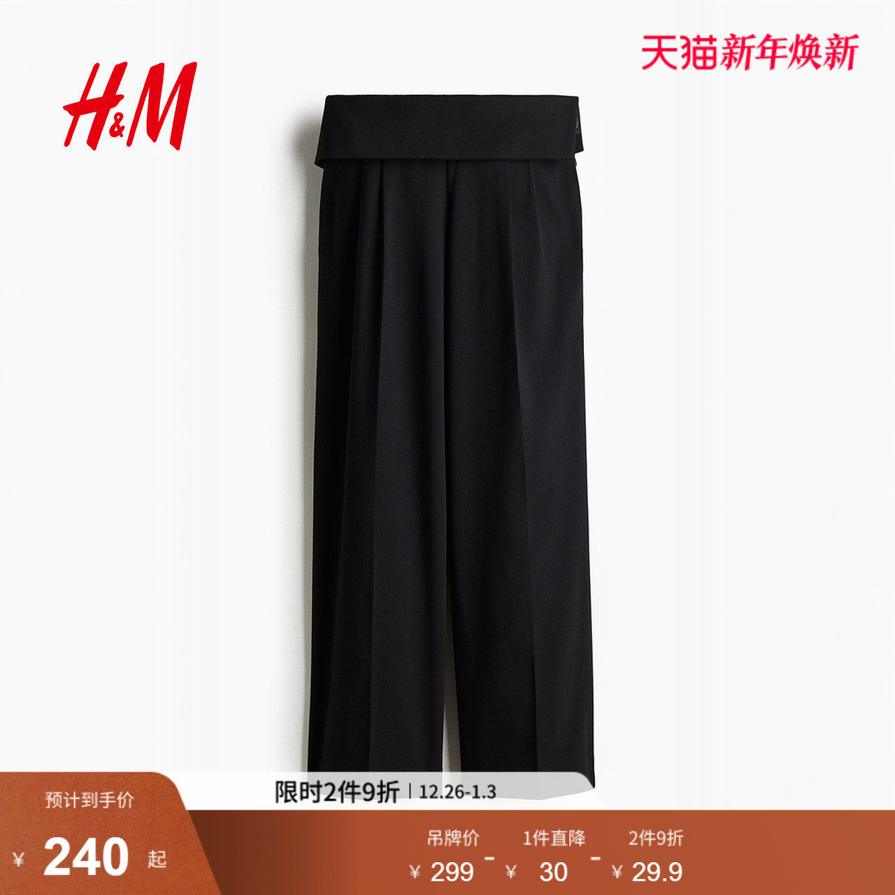 HM女装裤子2025冬季新款直筒裤腿通勤职业时尚谢谢西裤1312083