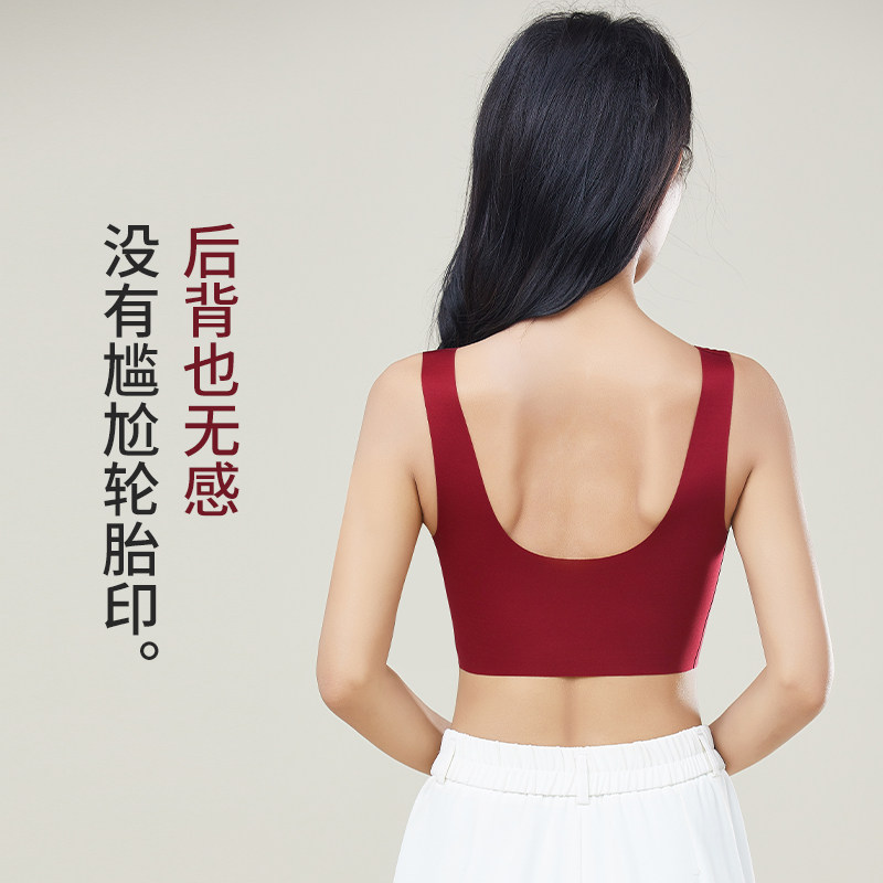 无痕美背抹胸内衣女小胸聚拢可外漏细肩带一体固定杯背心式文胸罩