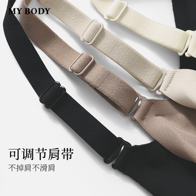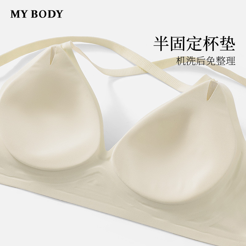 商场同款MYBODY新款无痕内衣光面无背扣一片式舒适交叉美背文胸女