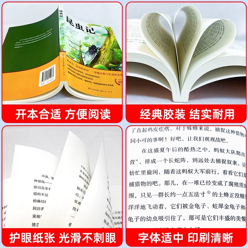 昆虫记法布尔人民文学出版社正版原著三年级下必读八年级下册七初中生8下完整版节选人教版初二课外阅读书籍小学生全集经典