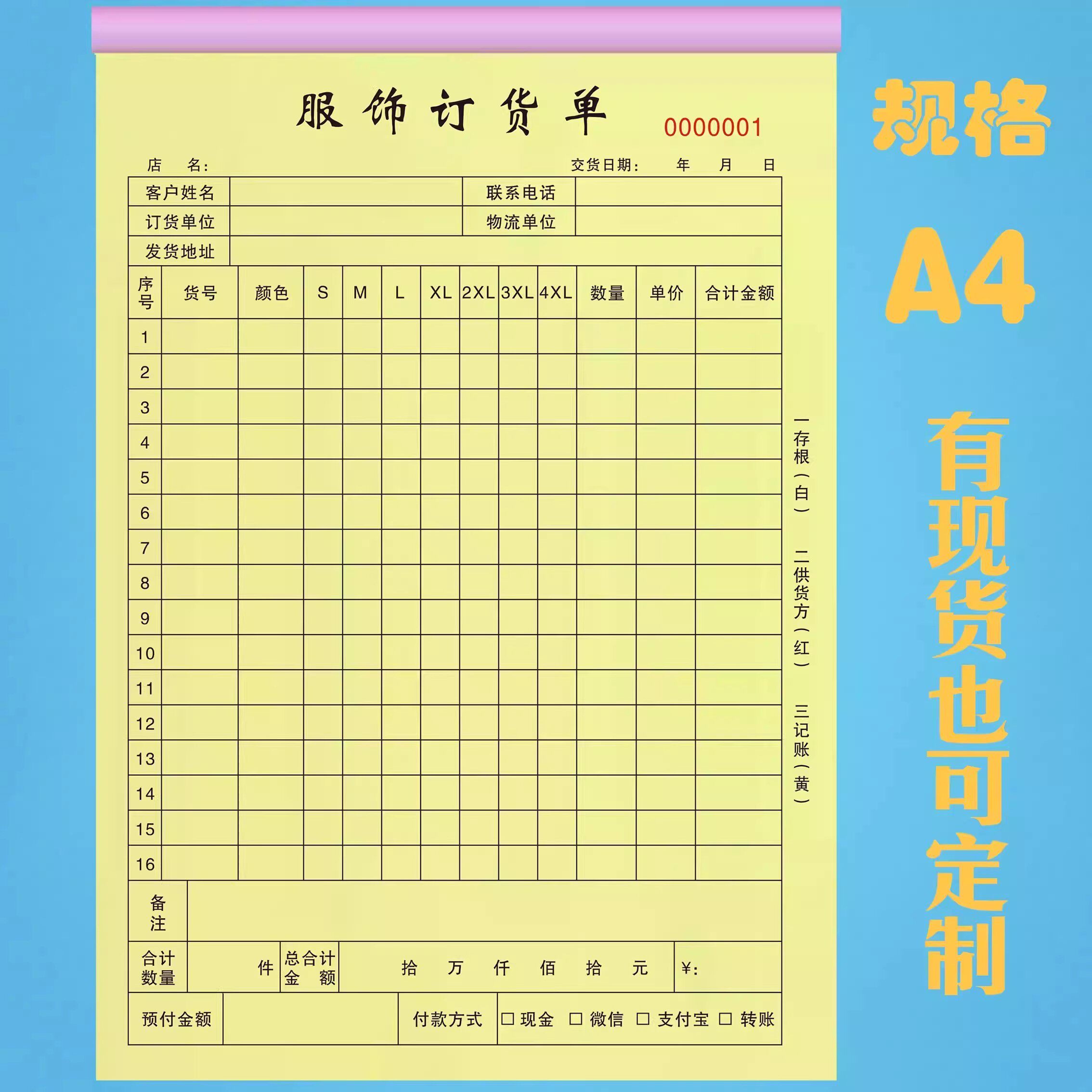 服饰订货单服装订货单服装店销售日报表定制服饰送货单服装开单本