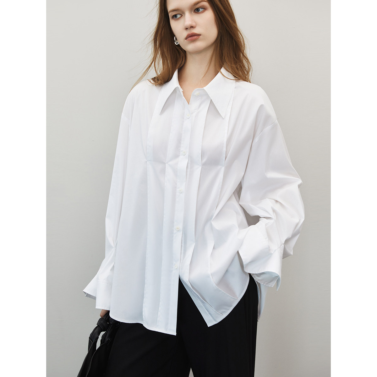 小个子时尚长袖白衬衫女士遮肚显瘦上衣2025春秋新款气质休闲衬衣