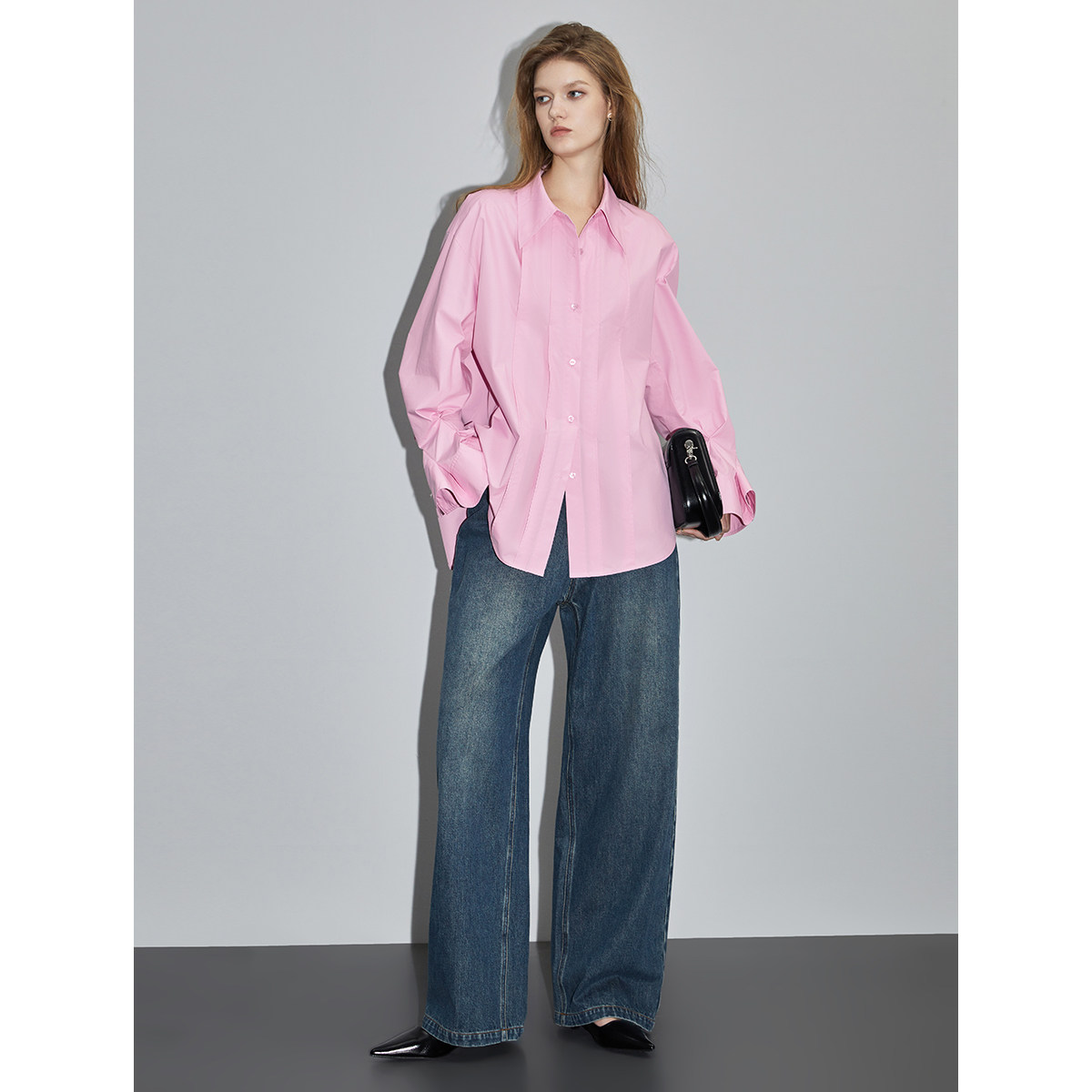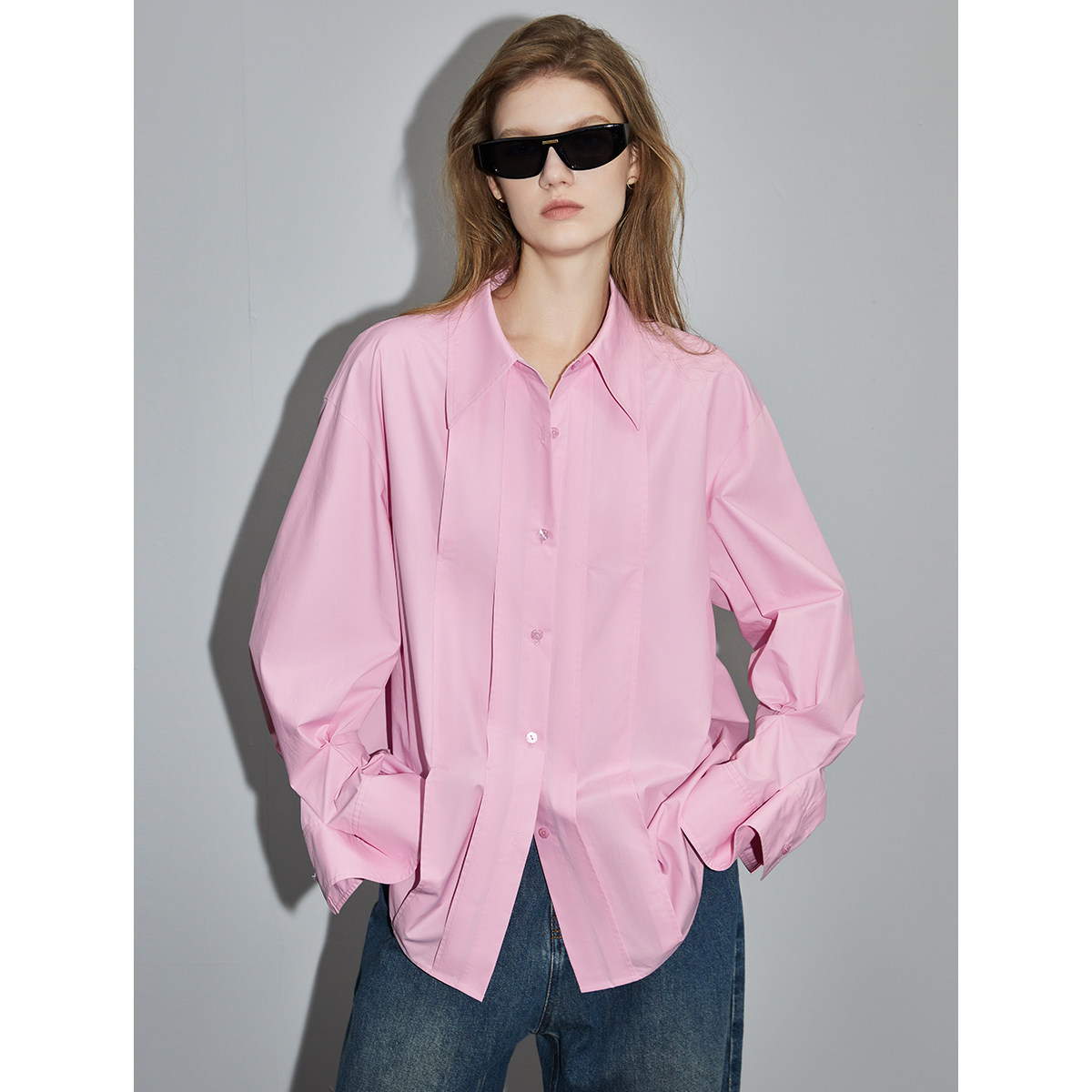 ELLE法式设计感小众气质粉色衬衫女2025秋新款小个子衬衣独特上衣