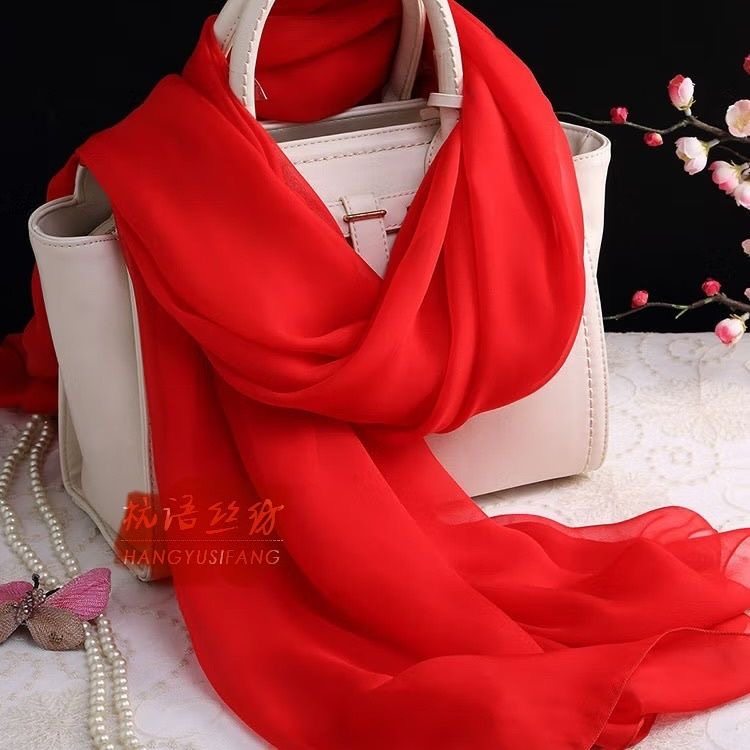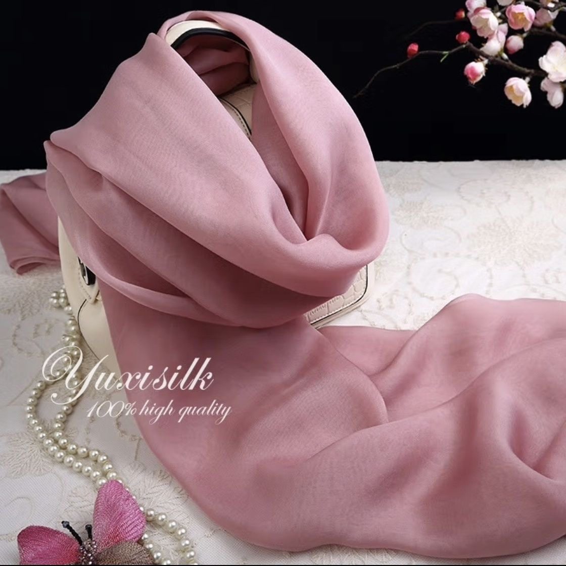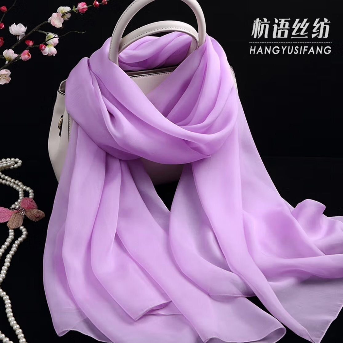 洋气真丝围巾女士桑蚕丝巾紫色时尚年轻妈妈围脖素色纯高档纯色