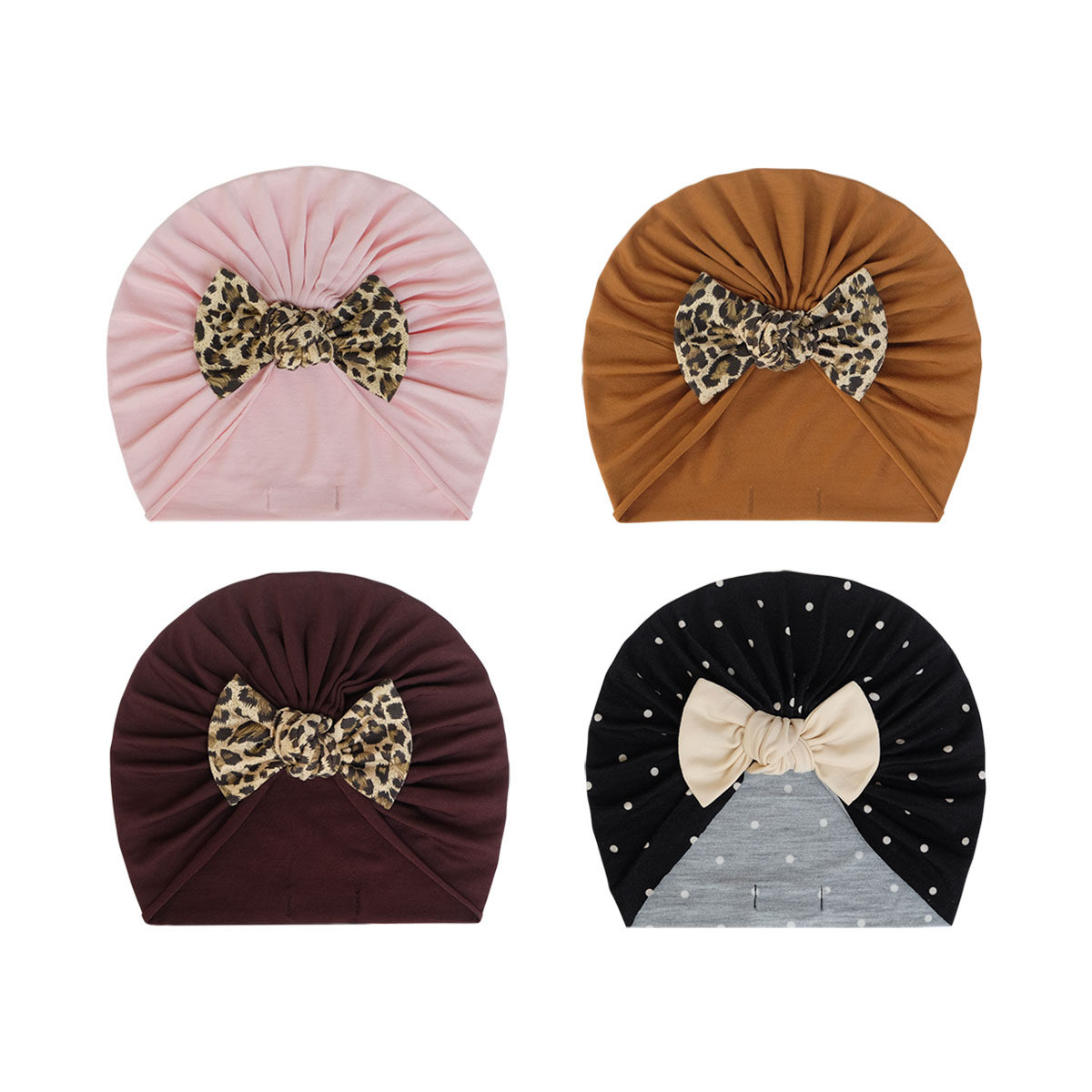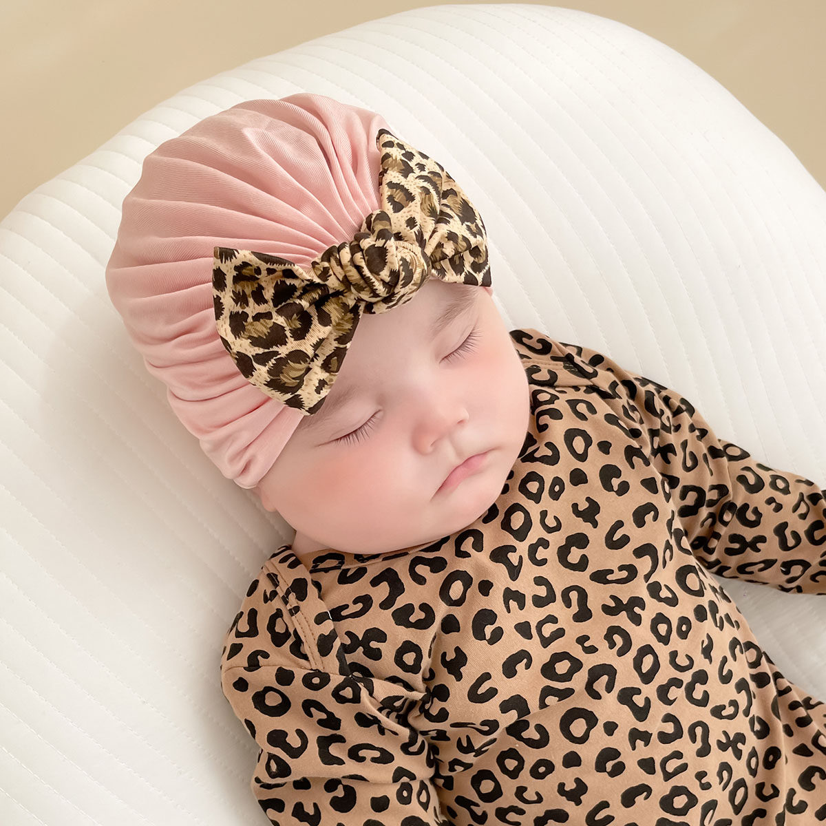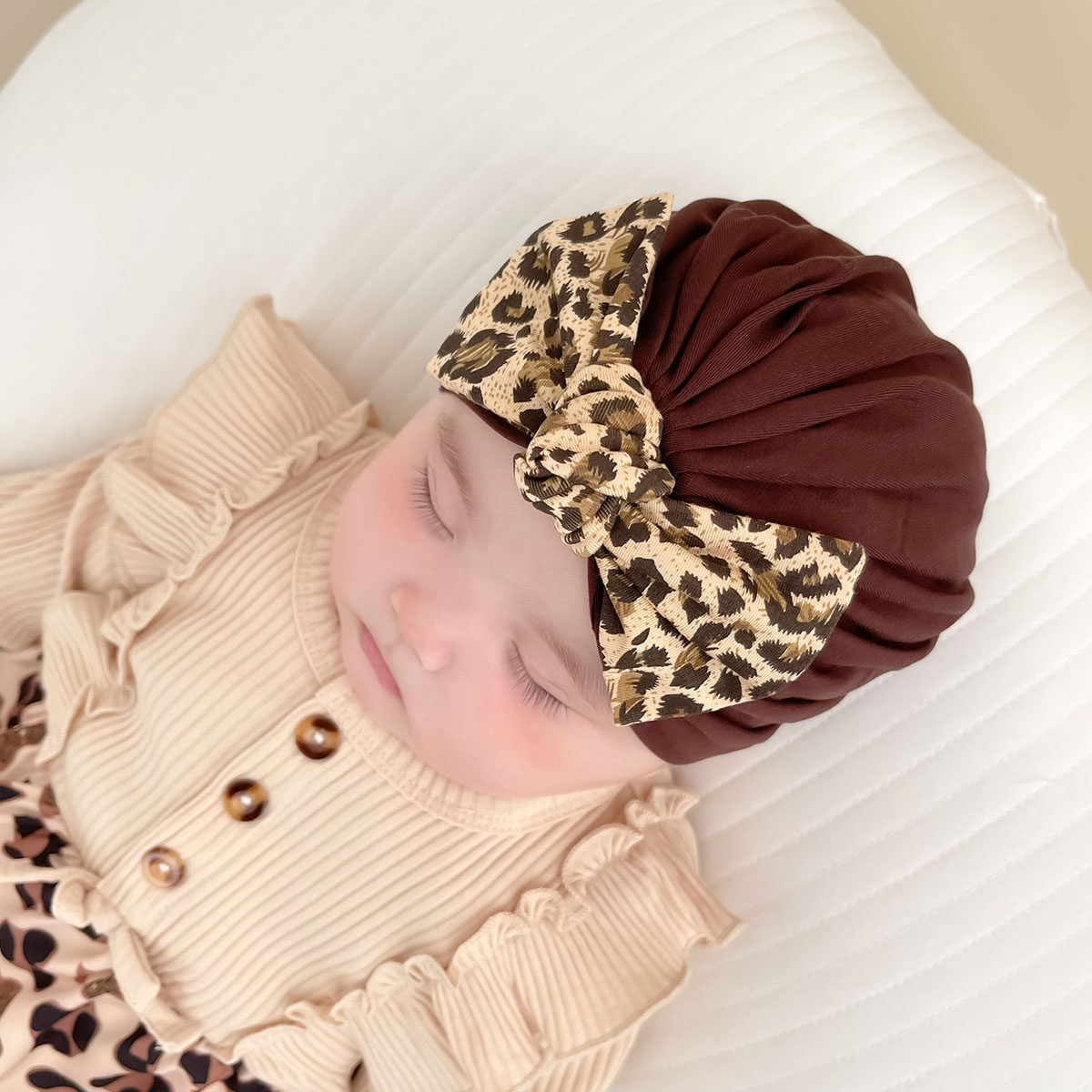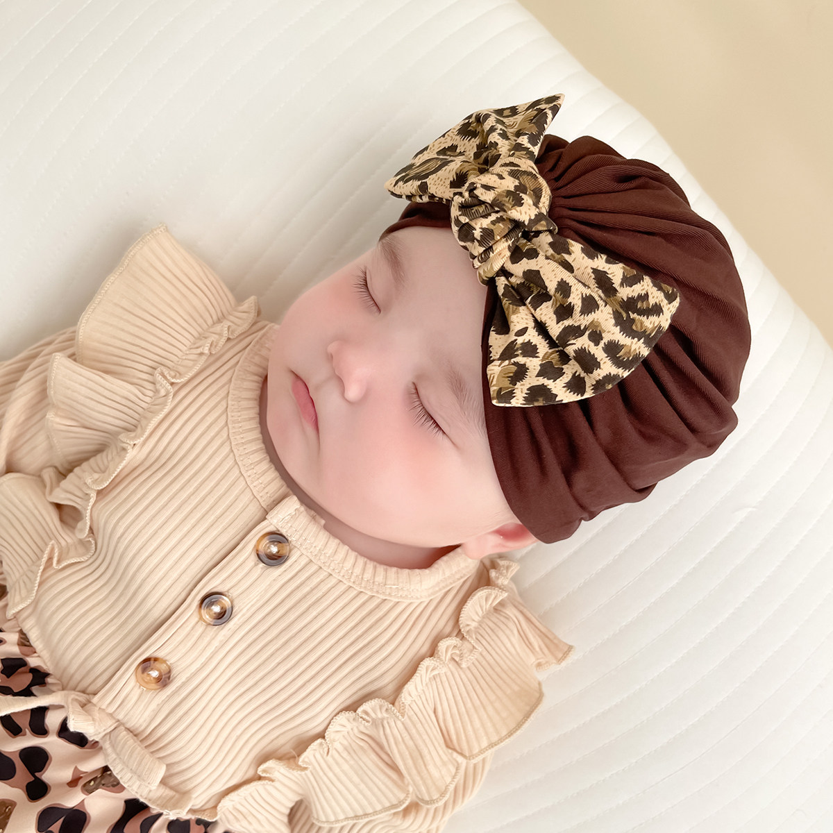 婴儿帽子春秋薄款莫代尔可爱豹纹儿童男女宝宝新生儿胎帽包头帽冬
