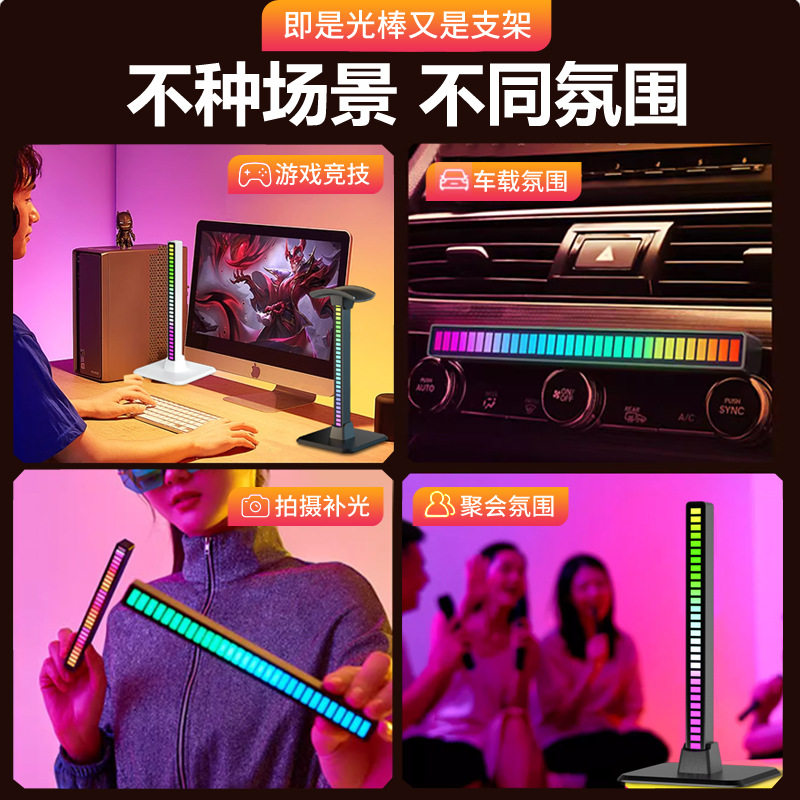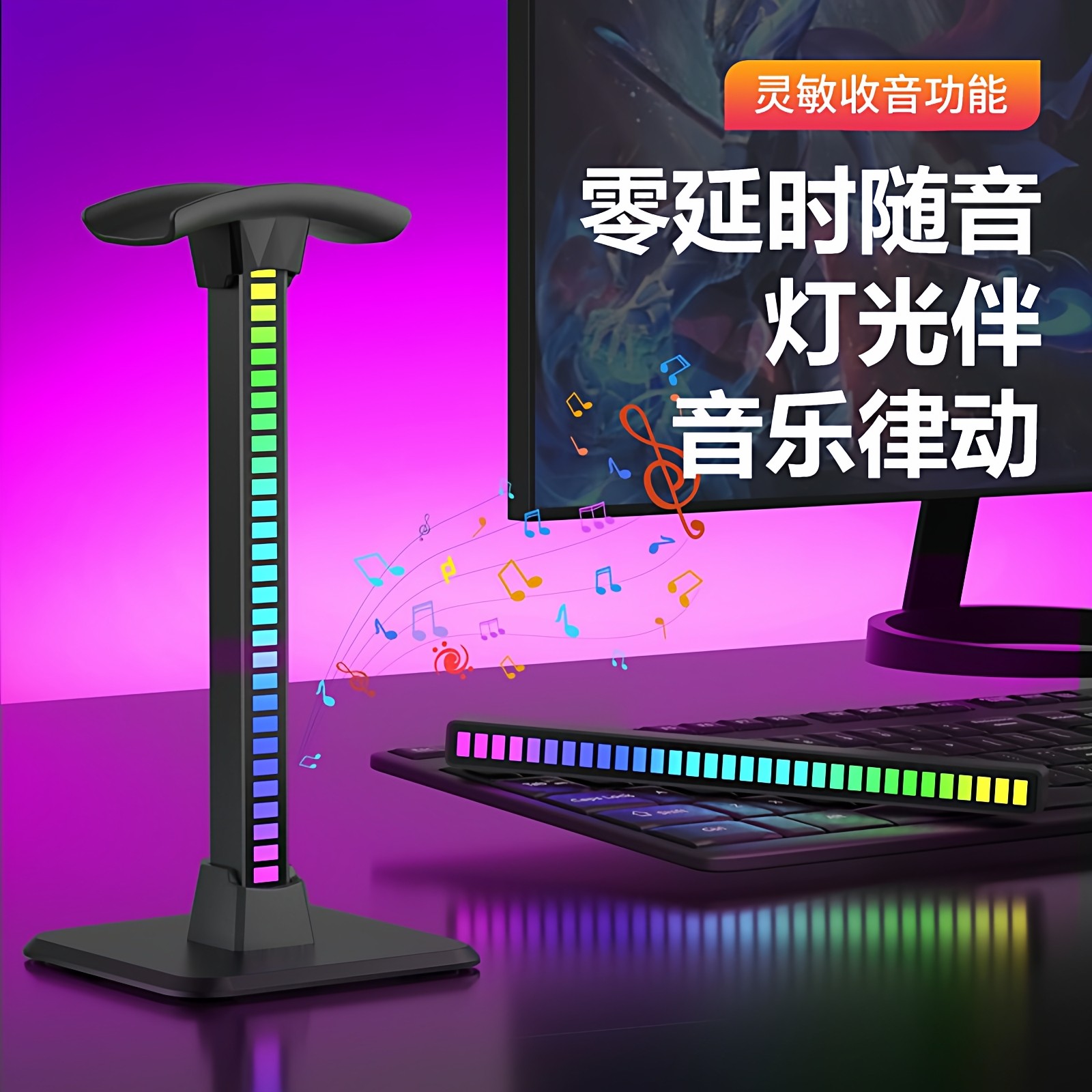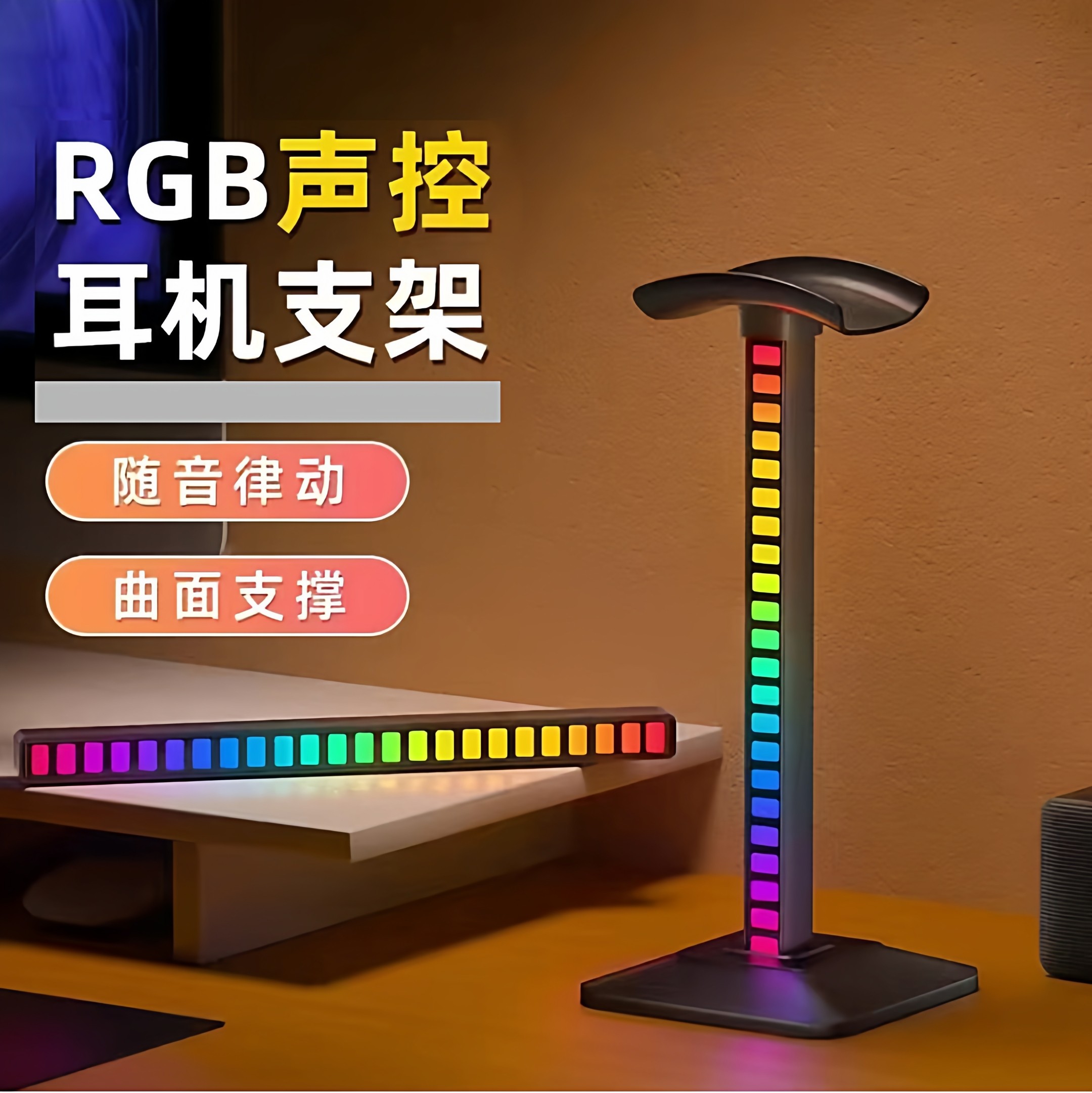 RGB拾音氛围灯头戴式耳机支架声控音乐节奏灯电竞桌面摆件拾音灯