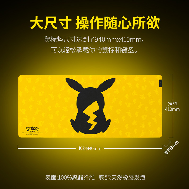 Razer雷蛇宝可梦皮卡丘联名款重装甲虫V3电脑电竞游戏鼠标垫桌垫
