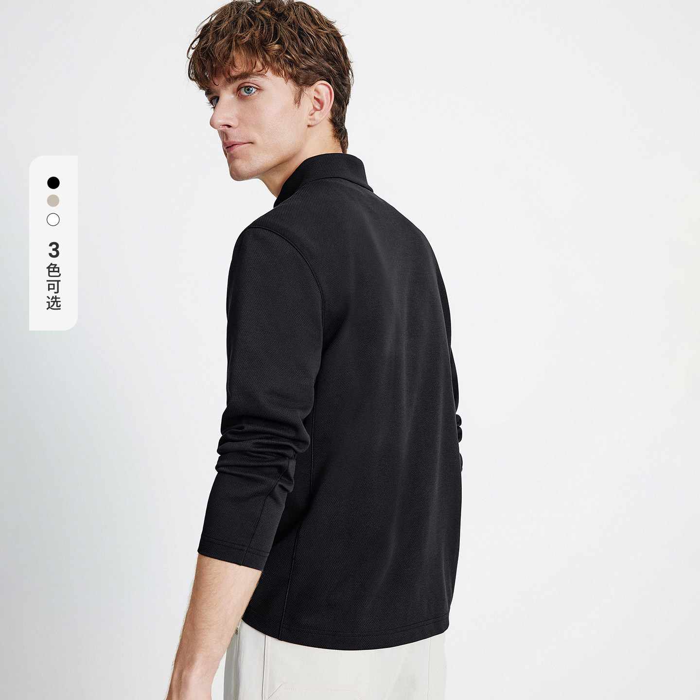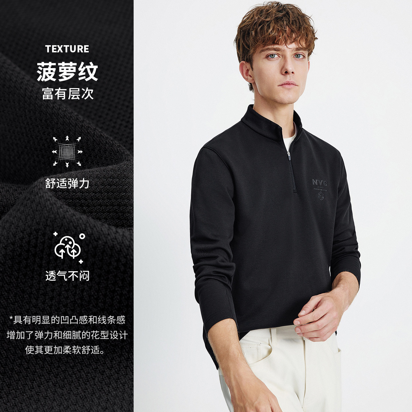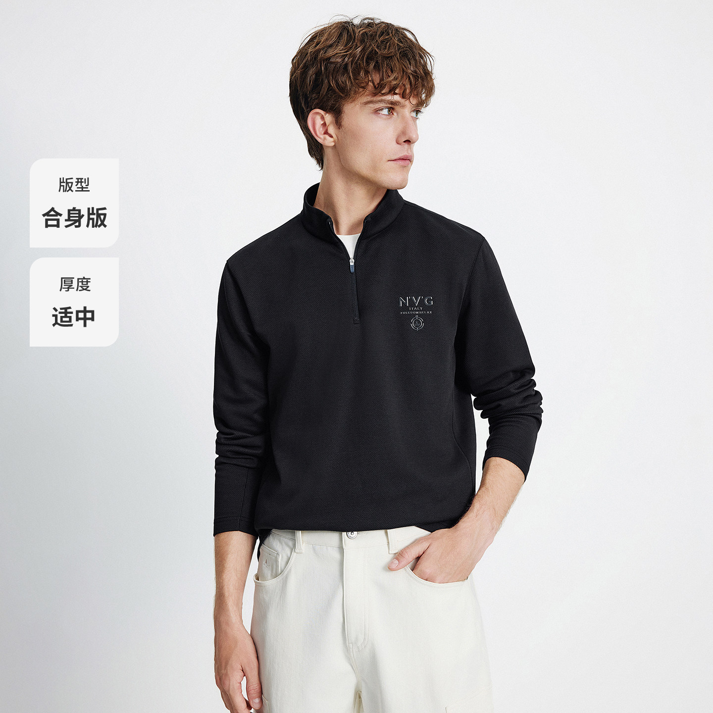 Navigare意大利小帆船黑色通勤长袖T恤男士春秋季新品半开领上衣