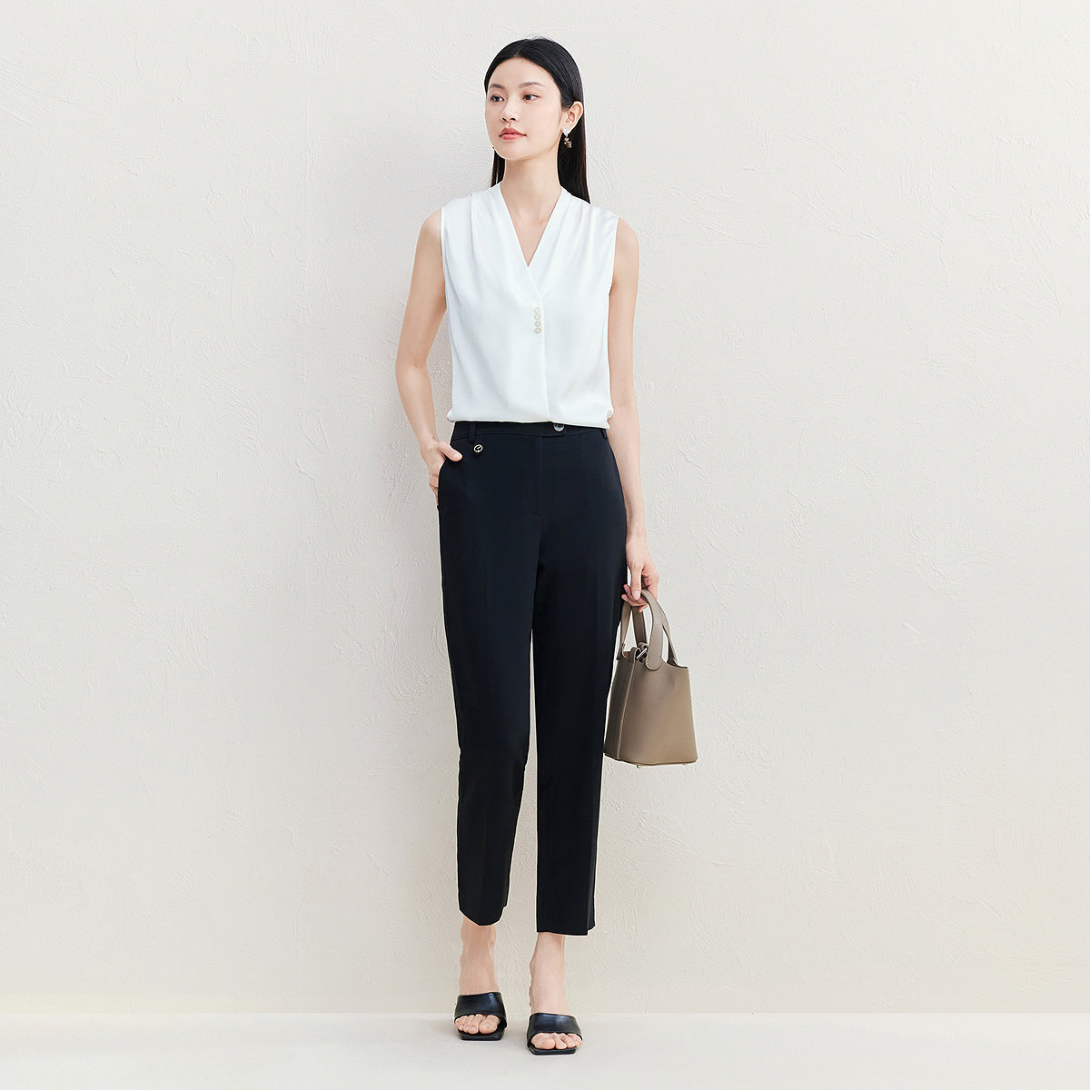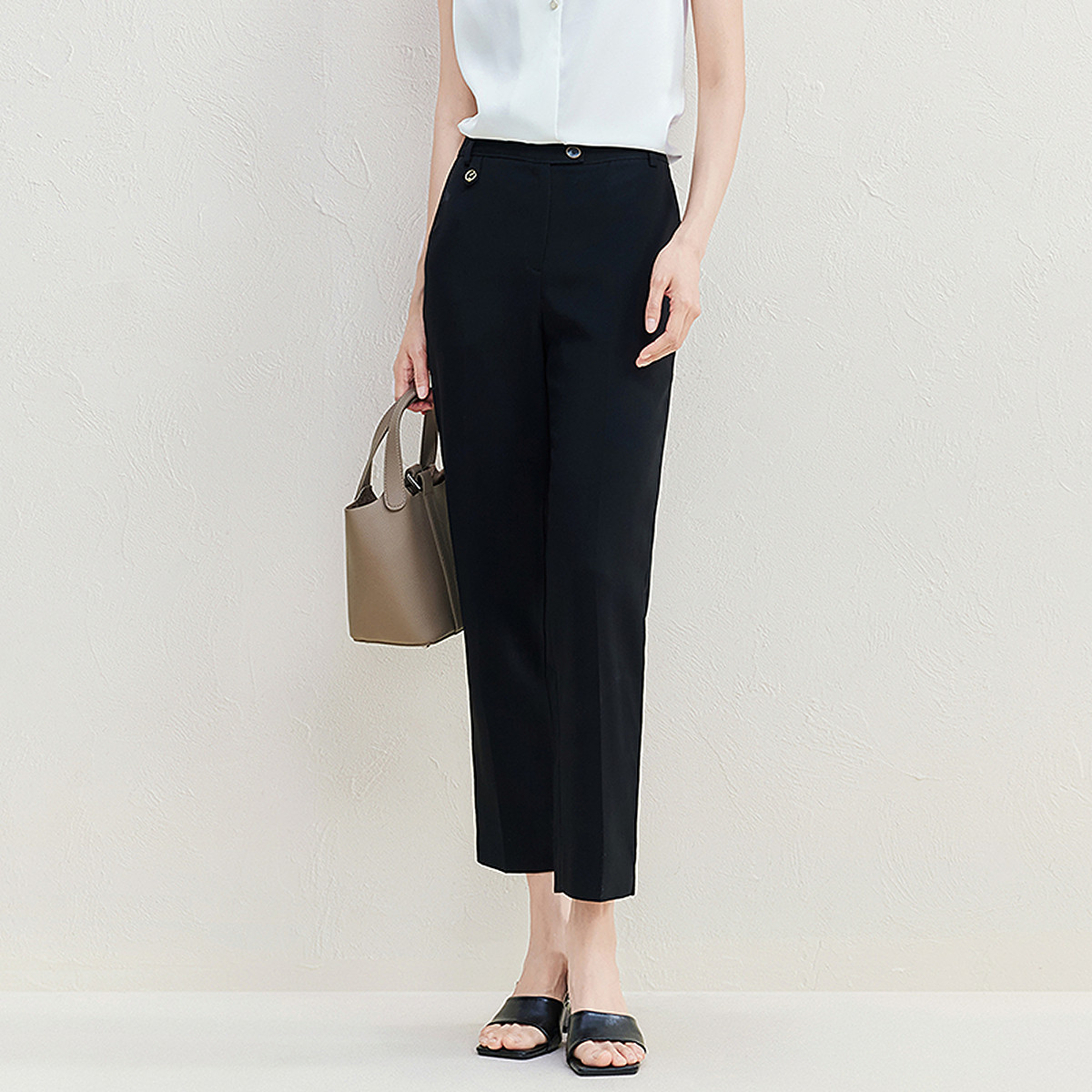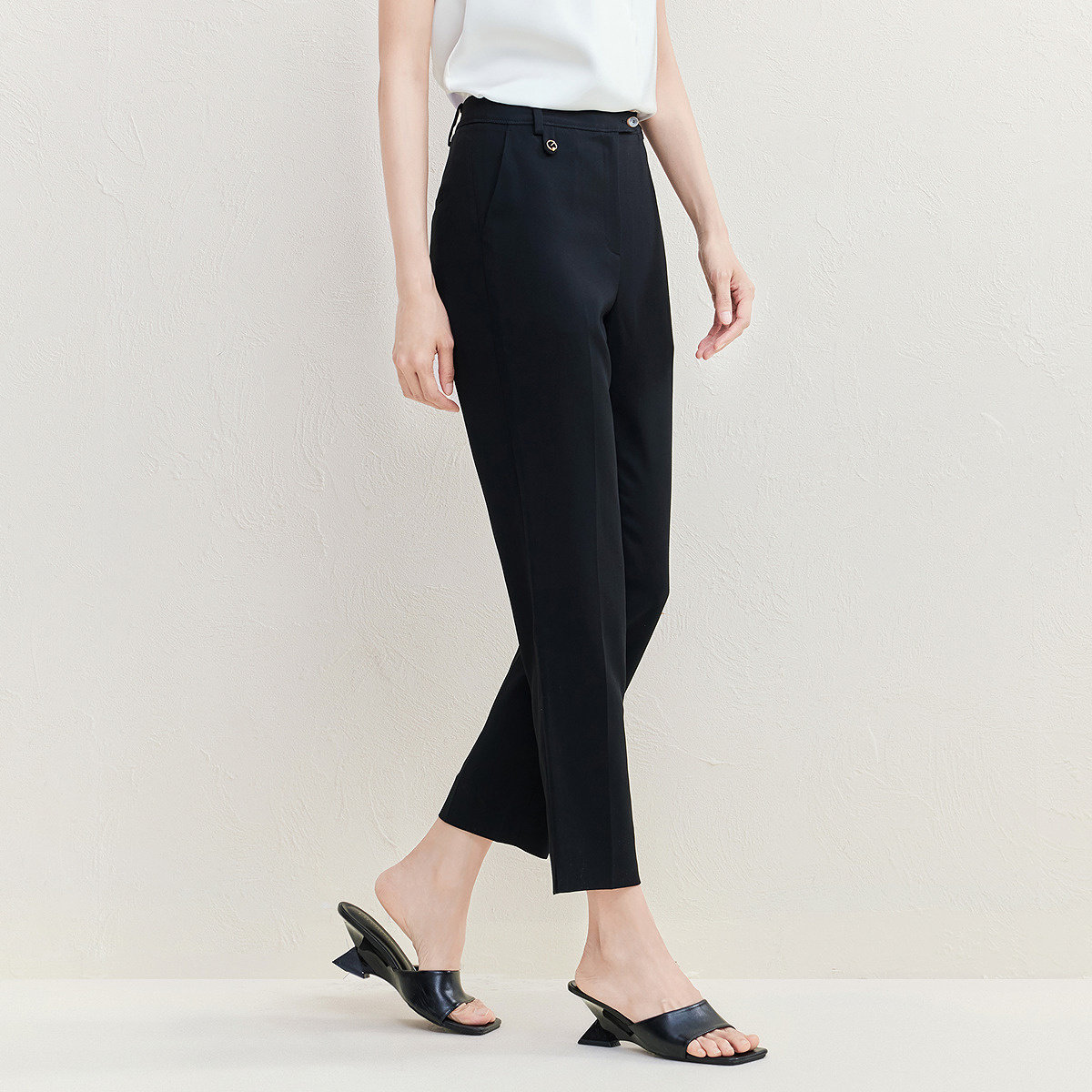 FINITY菲妮迪休闲裤2026年春季新款简约黑色直筒垂感哈伦裤长裤女