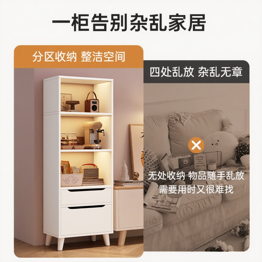 简易书架落地靠墙客厅置物架分层收纳架储物柜子一体简约家用书柜