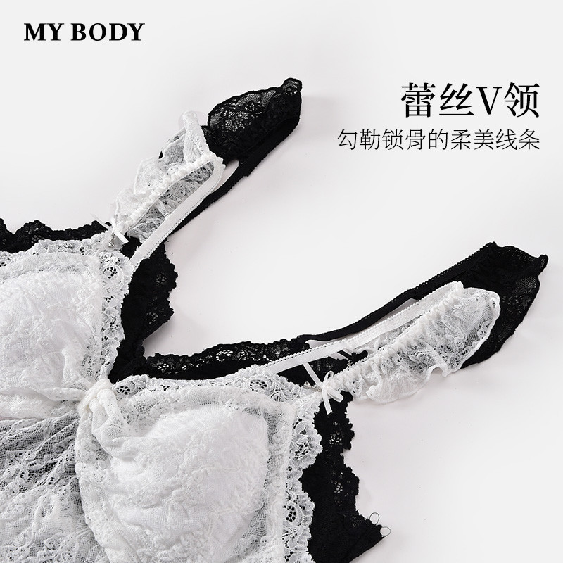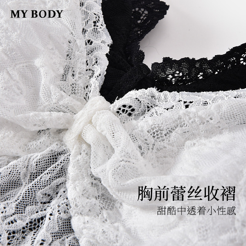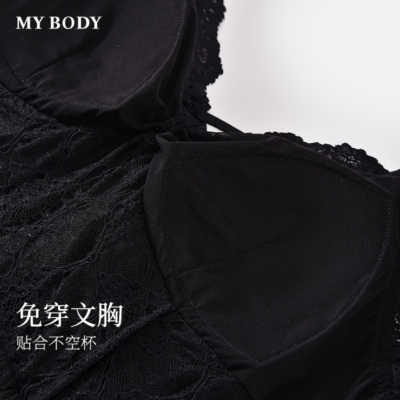 商场同款MYBODY夏季新款性感睡衣法式纯欲蕾丝V领带胸垫吊带睡裙