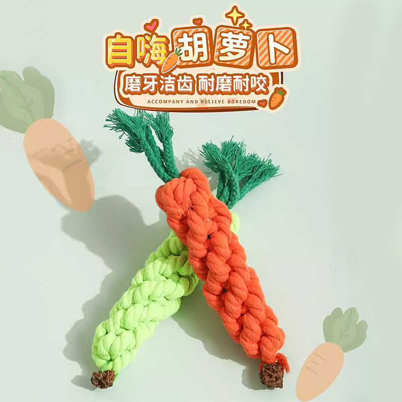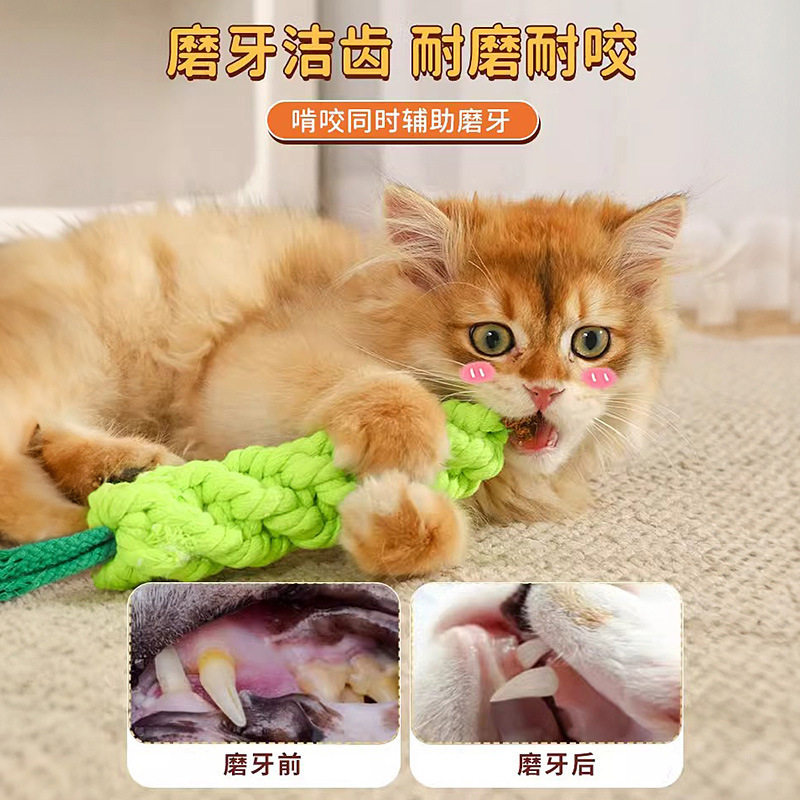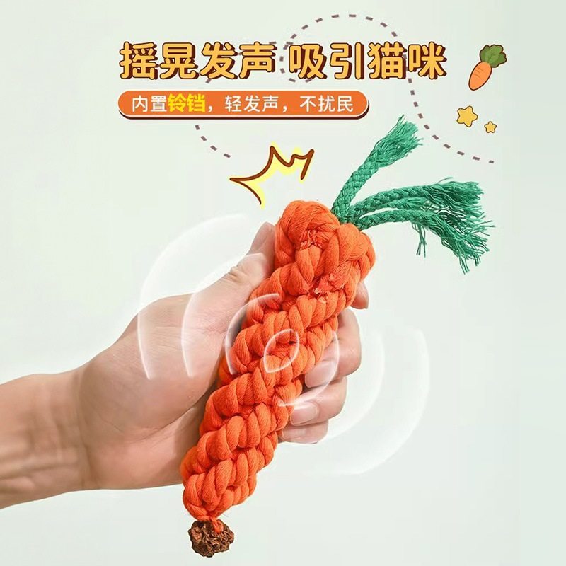 宠物磨牙玩具棉绳胡萝卜幼猫小狗耐咬绳结带铃铛训练球解闷逗猫棒