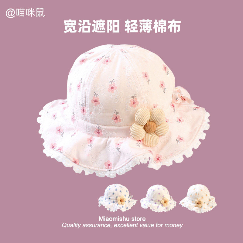 女宝宝帽子2025春季薄款婴儿渔夫帽大帽檐公主遮阳帽女童外出防晒